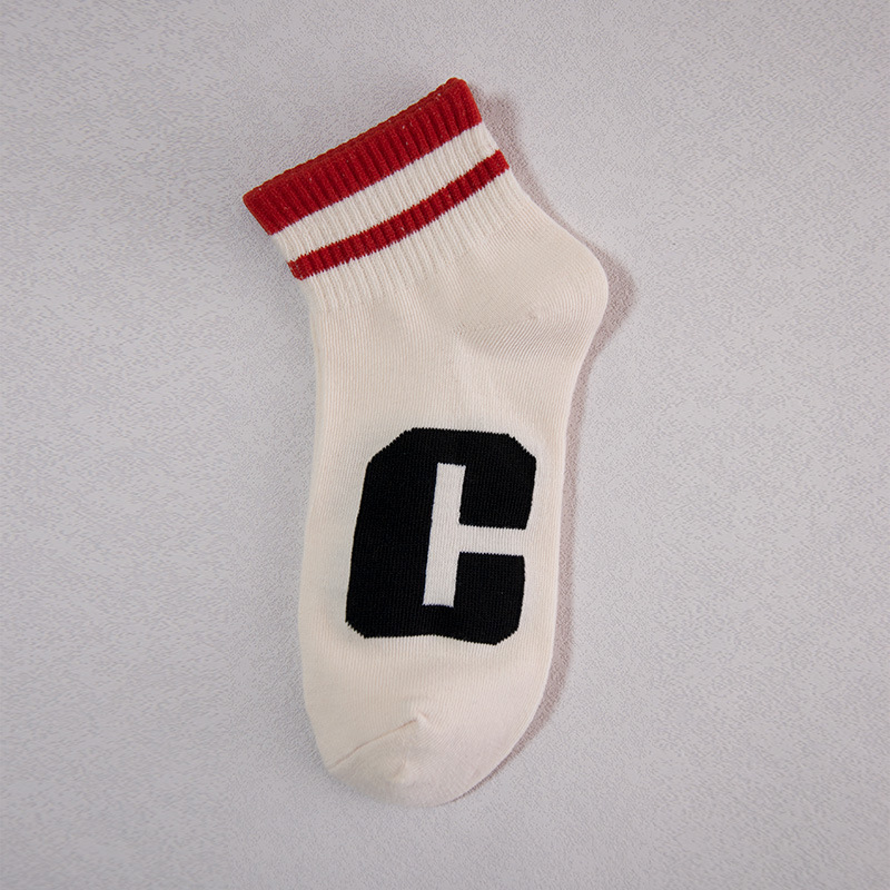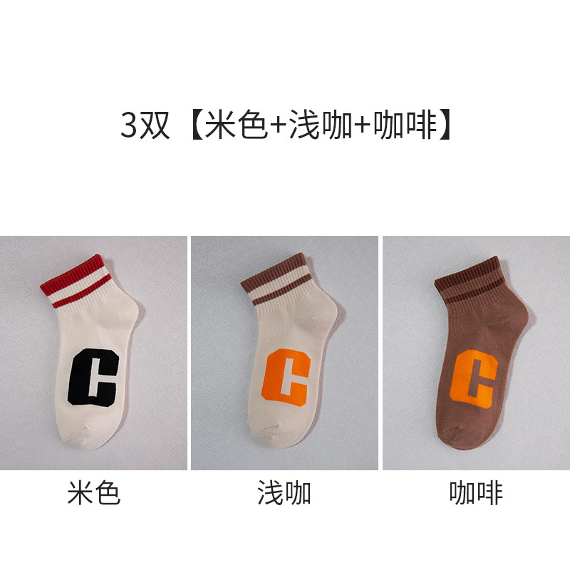양말 남성용 짧은 양말 여름 얇은 단색 모든 매치 스트라이프 문자 짧은 튜브 양말 여성은 가을과 겨울에 떨어지지 않습니다.스토어 가기