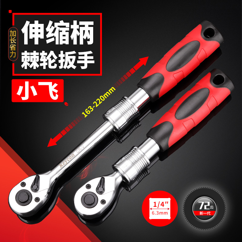 Keycon 진카이 텔레스코픽 핸들 래칫 렌치 72 이빨 1/2 큰 비행 3/8 중간 비행 1/4 작은 비행 빠른 렌치