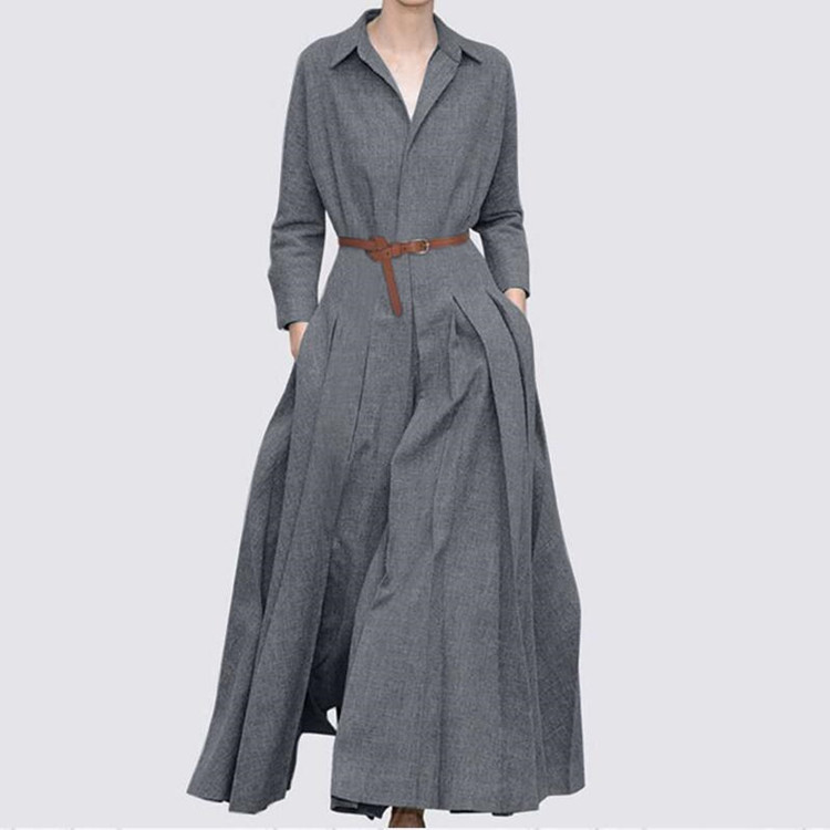 2023 크로스 보더 AliExpress 가을 노 벨트 단색 느슨한 긴 소매 옷깃 캐주얼 단색 원피스스토어 가기