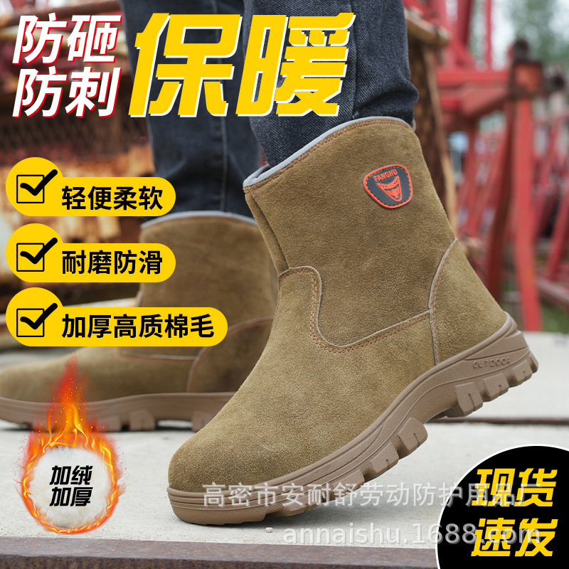 노동 보호 신발 남자의 안티 스매쉬 및 안티 펑크 착용 겨울 기모 따뜻한 초대형 용접기 작업 신발 제조 업체 도매스토어 가기