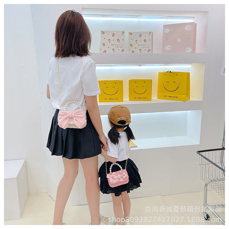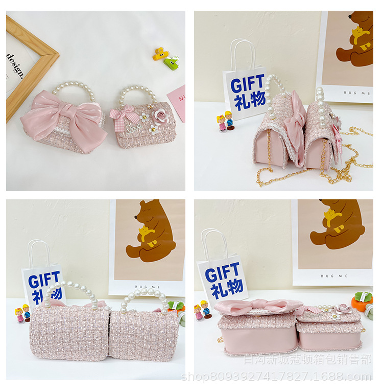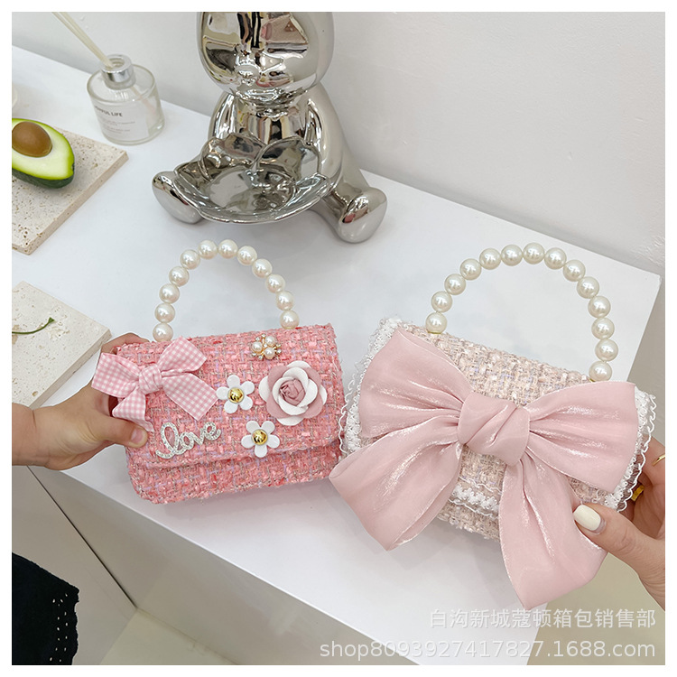 새로운 어린이 패션 샤넬 스타일 공주 엘사 가방 어린 소녀 진주 휴대용 크로스 바디 가방 휴대 전화 인터넷 빨간 가방스토어 가기