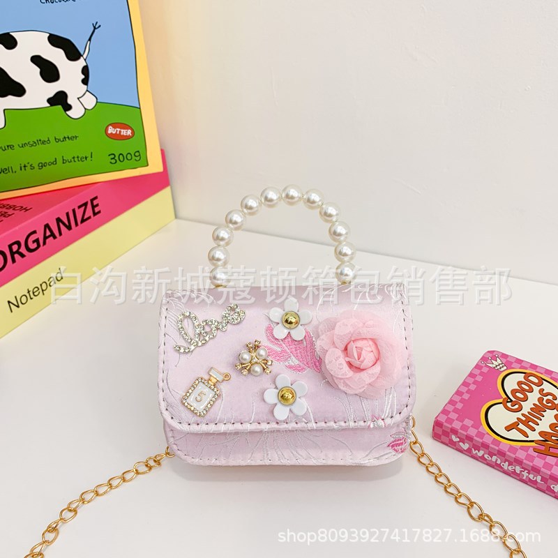 새로운 어린이 패션 샤넬 스타일 공주 엘사 가방 어린 소녀 진주 휴대용 크로스 바디 가방 휴대 전화 인터넷 빨간 가방