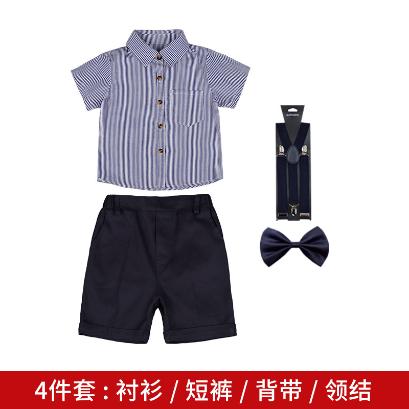 어린이 세트 2023 여름 새로운 반팔 멜빵 바지 투피스 유행 소년 호스트 합창 공연 원피스스토어 가기