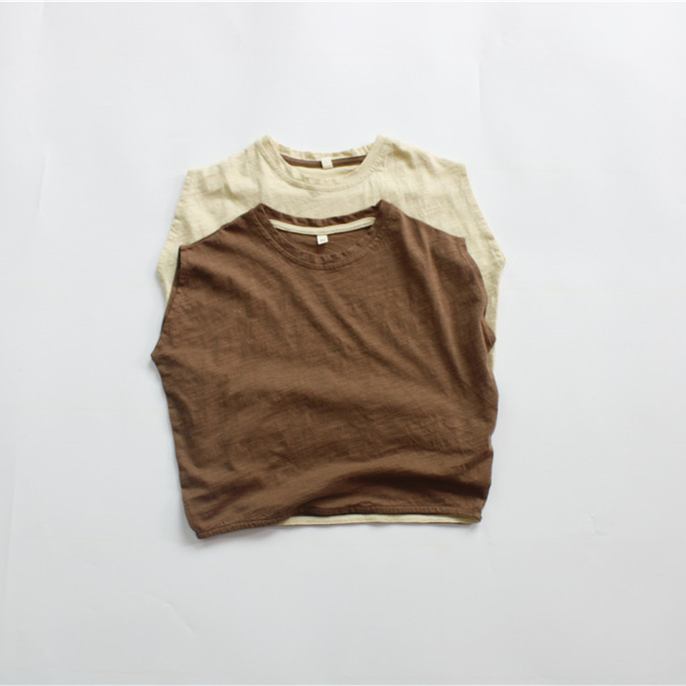 새로운 어린이 티셔츠 카테고리 a 소년 바닥 셔츠 민소매 한국 스타일 라운드 넥 솔리드 컬러 소녀 탑 여름 대나무면