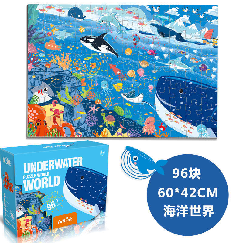 96片系列彩盒尺寸25.5*9*19.5cm,拼图尺寸60*42cm,单盒净重600g左右。1箱装24盒