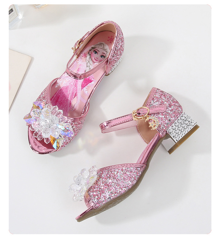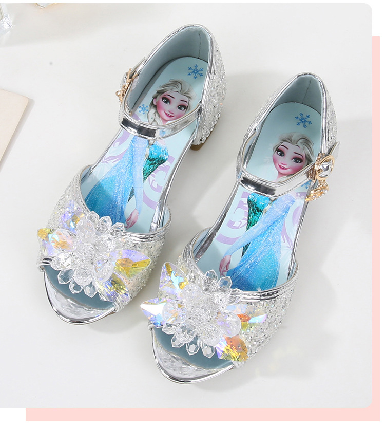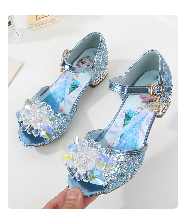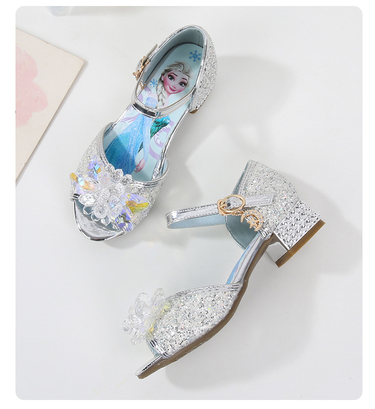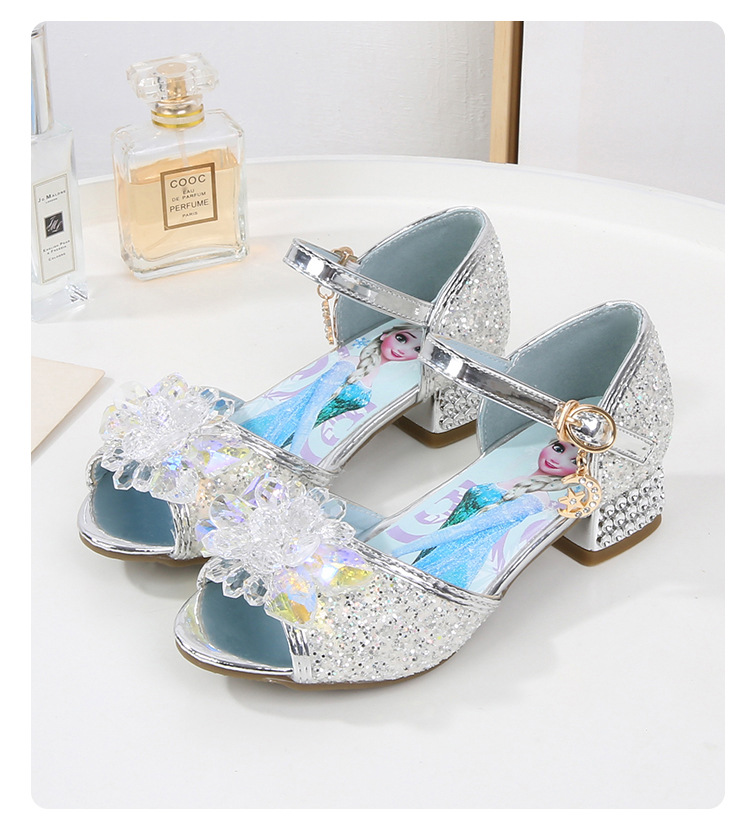 여자 하이힐 샌들 2024 여름 어린이 크리스탈 신발 큰 어린이 부드러운 바닥 얼음과 눈 공주 엘사 신발 미끄럼 방지스토어 가기
