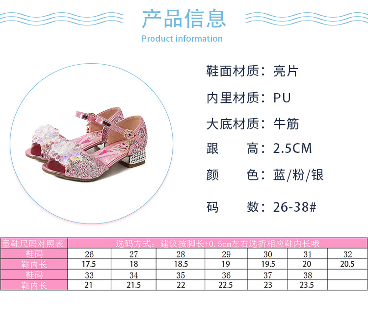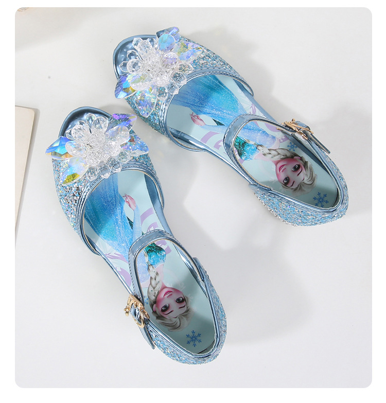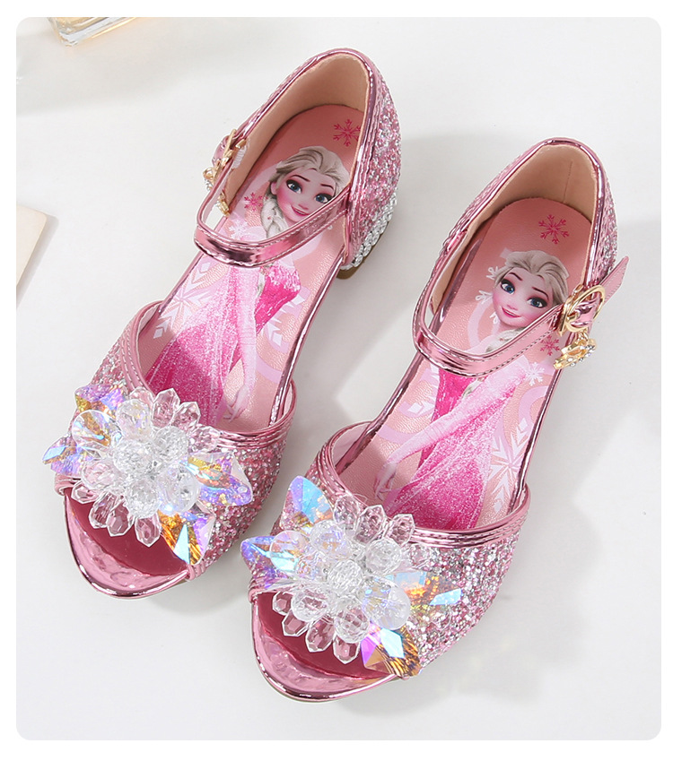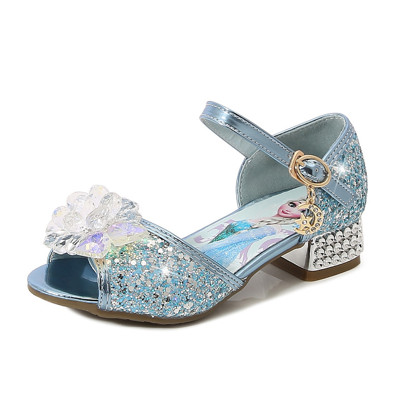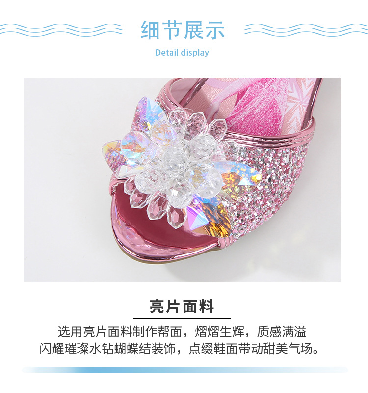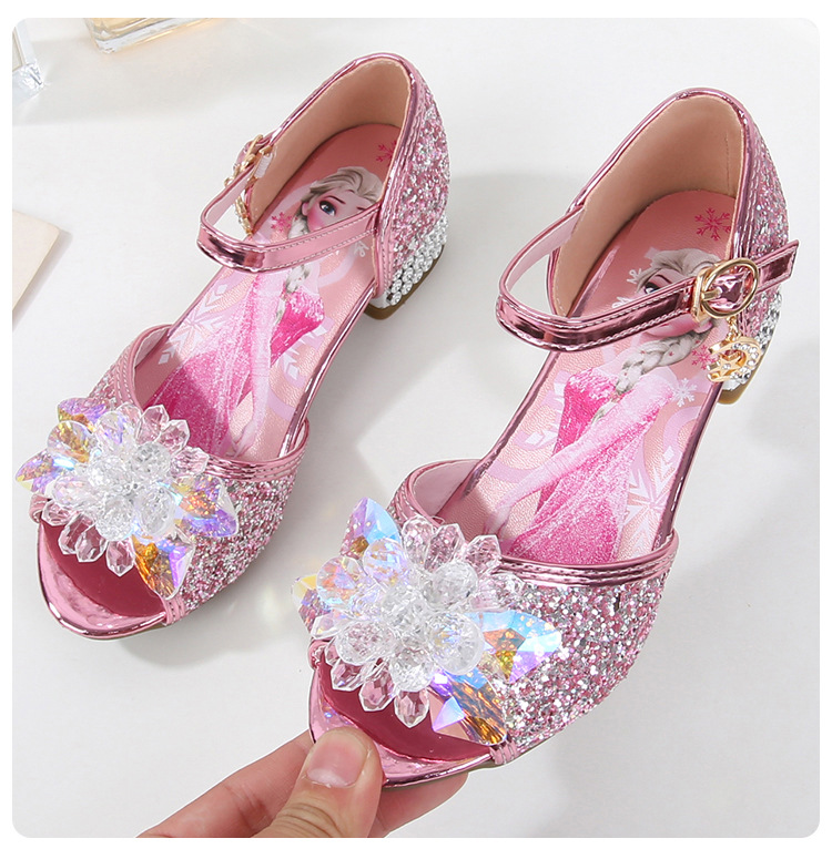 여자 하이힐 샌들 2024 여름 어린이 크리스탈 신발 큰 어린이 부드러운 바닥 얼음과 눈 공주 엘사 신발 미끄럼 방지스토어 가기