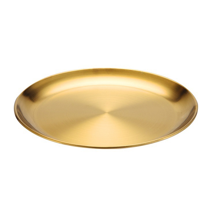 韩式不锈钢圆盘家用碟子金色水果甜品沙拉蛋糕菜盘不锈钢餐盘批发¥1.45立即购买