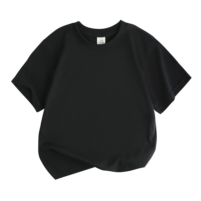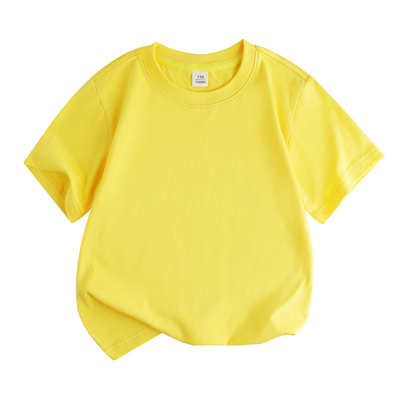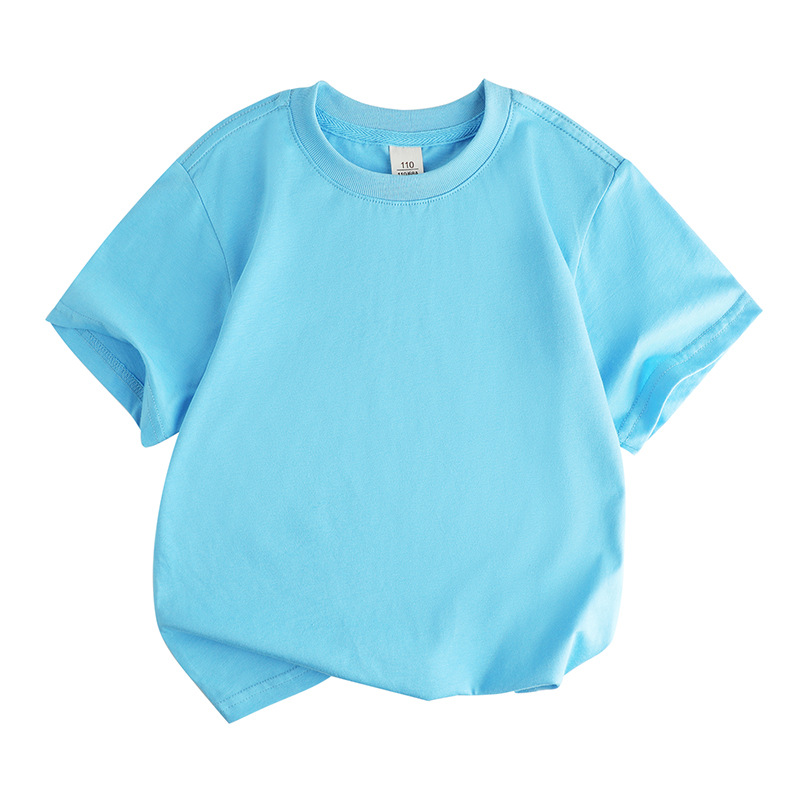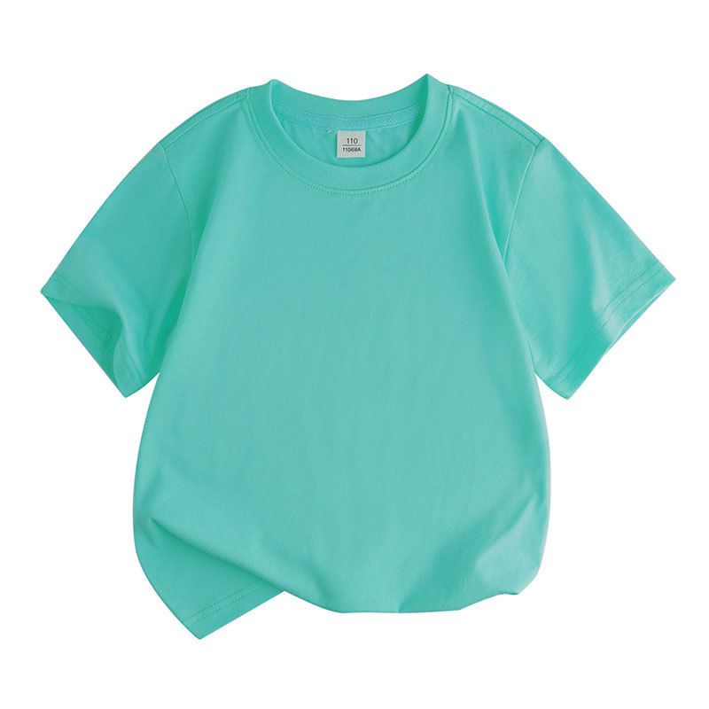 2025 새로운 아동 의류 솔리드 컬러 느슨한 라운드 넥 순수 코튼 한국어 버전 솔리드 컬러 땀 흡수 DIY 반팔 티셔츠 클래스 유니폼 활동 여름스토어 가기