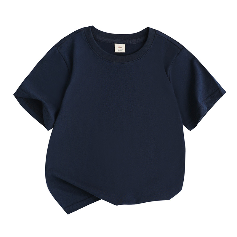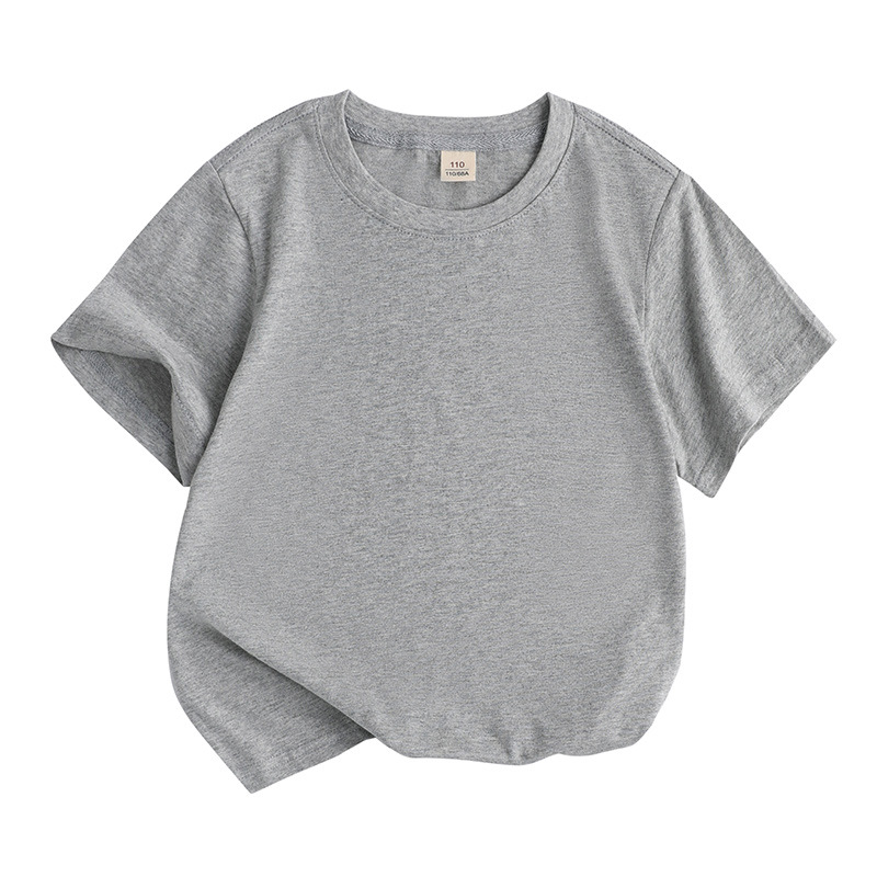 2025 새로운 아동 의류 솔리드 컬러 느슨한 라운드 넥 순수 코튼 한국어 버전 솔리드 컬러 땀 흡수 DIY 반팔 티셔츠 클래스 유니폼 활동 여름