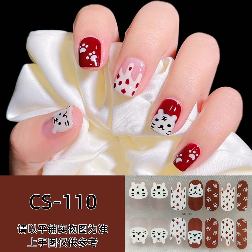 비 베이킹 젤 작은 신선한 방수 내구성 3D 네일 스티커 패치 여성용 분리형 웨어러블 네일 아트 스티커 풀 스티커