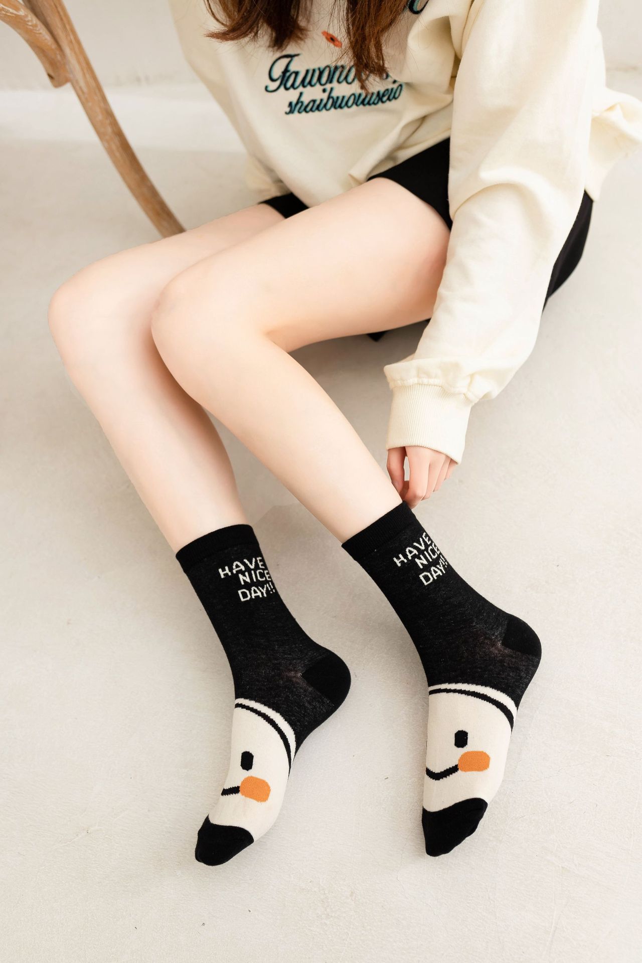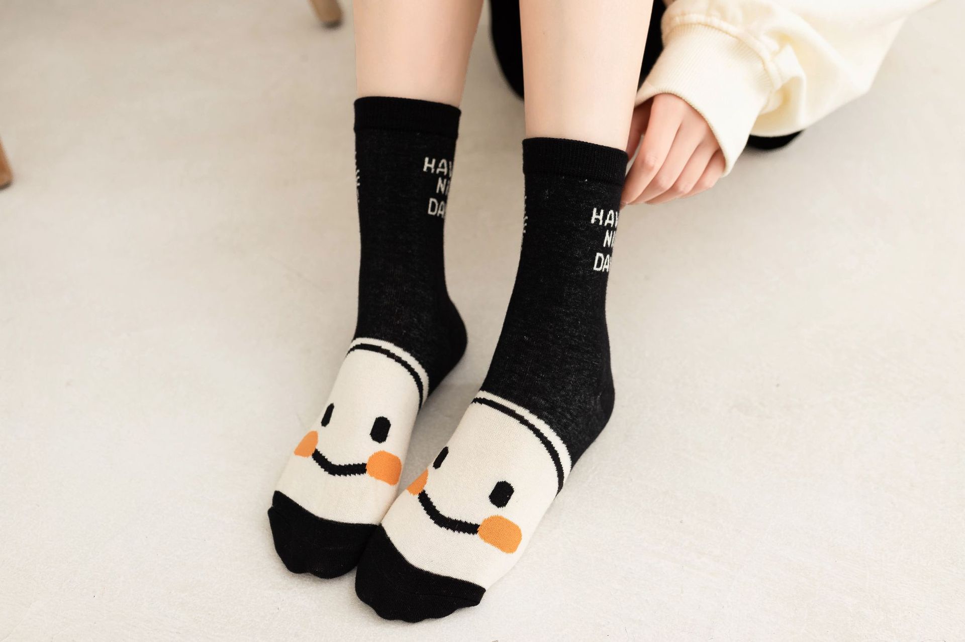 名称:黑白笑脸中筒袜