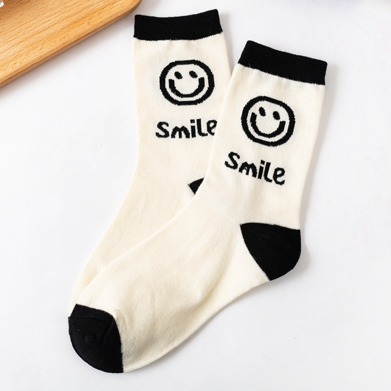 22 일본식 양말 여성용 블랙 스마일 코튼 미드 튜브 여성용 양말 빗질 코튼 모든 경기 편지 대학 패션 양말스토어 가기