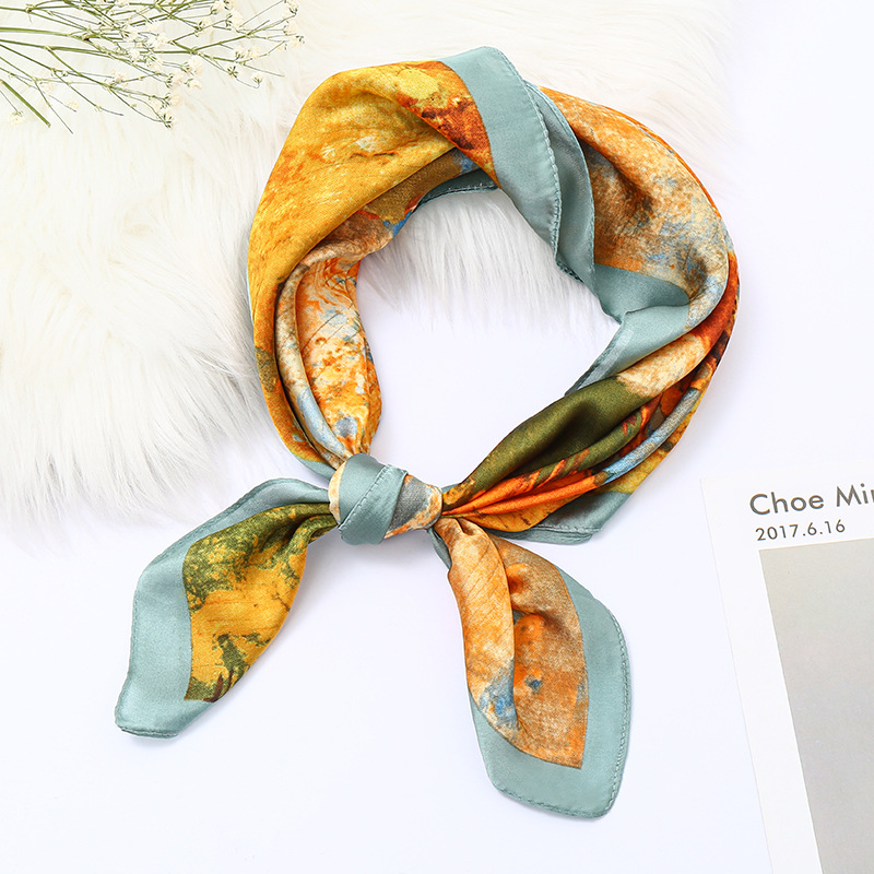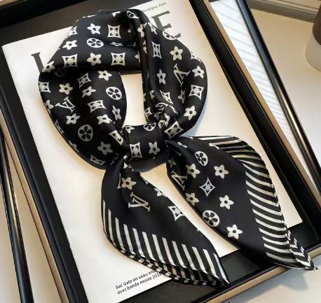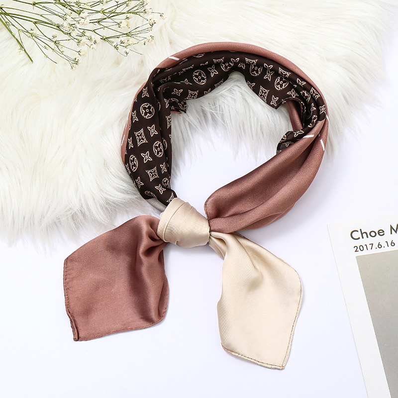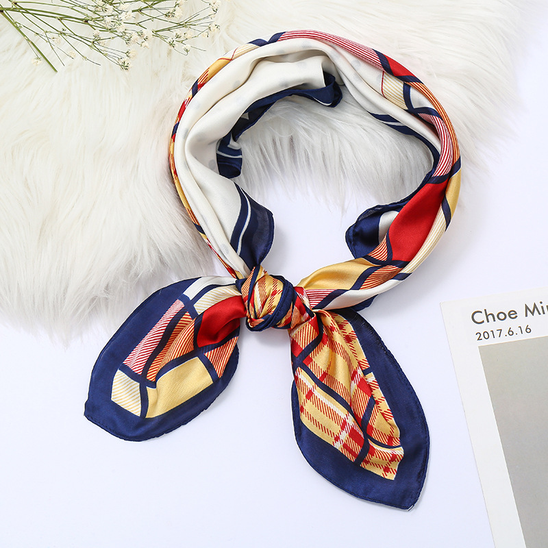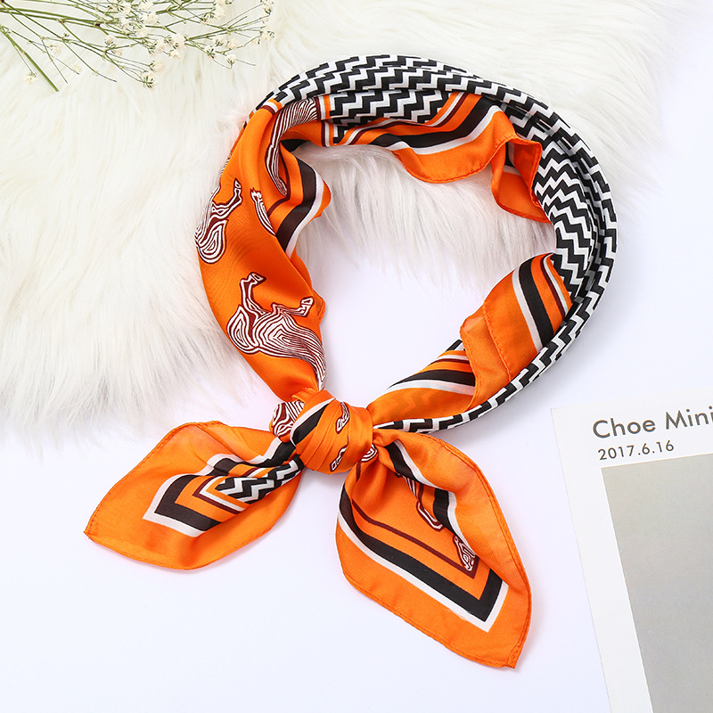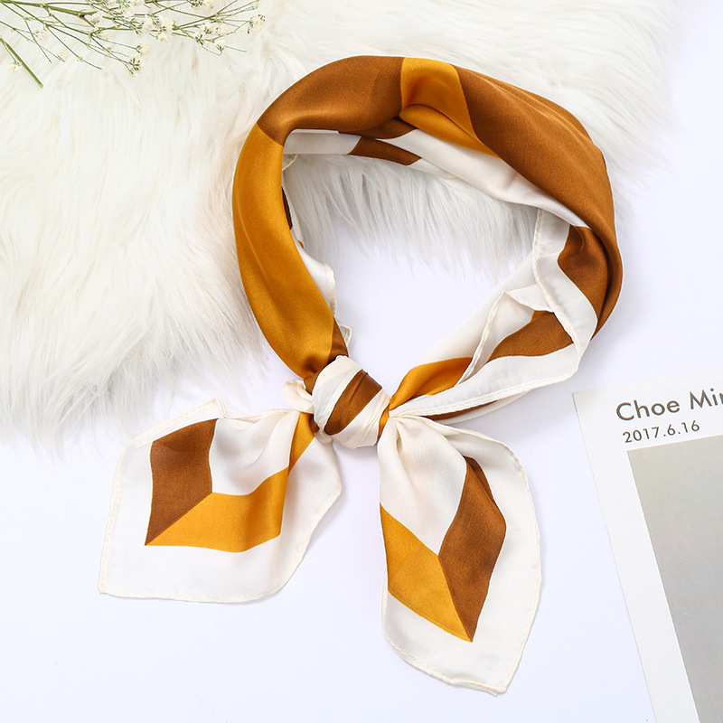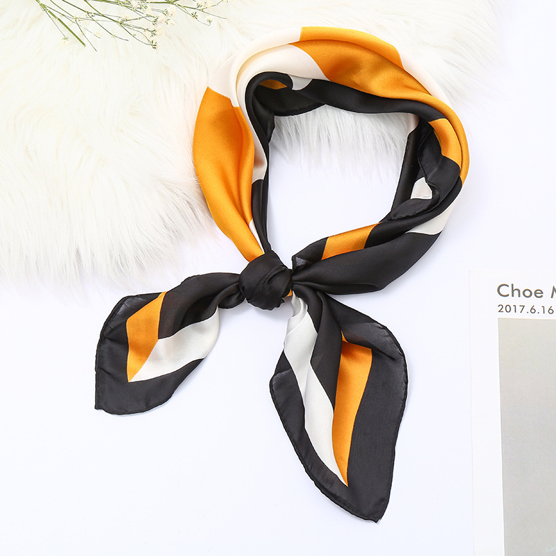 70*70 같은 스타일 스트라이프 실크 스카프 여성용 작은 사각형 스카프 한국식 다용도 전문 소형 스카프 여름 얇은 장식 스카프