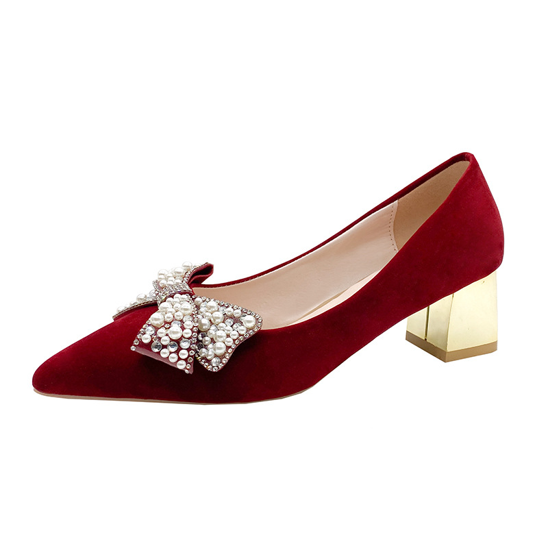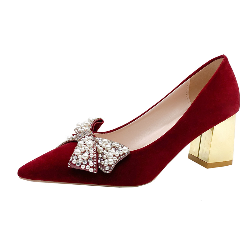 진주 틈새 프랑스 웨딩 슈즈 여성용 스틸레토 힐 2022 새로운 레드 Xiuhe 웨딩 원피스 2 착용 신부 신발 하이힐스토어 가기