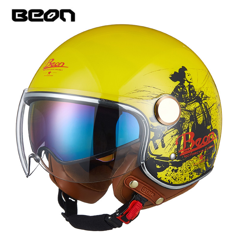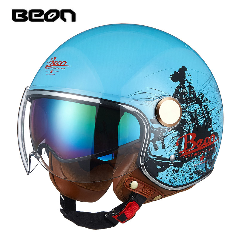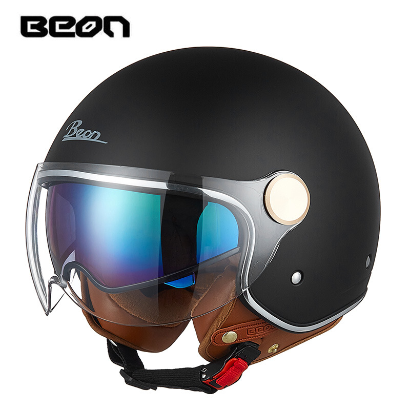 BEON 듀얼 렌즈 오토바이 반헬멧 남녀공용 레트로 헬멧 3/4 헬멧 사계절용 여름