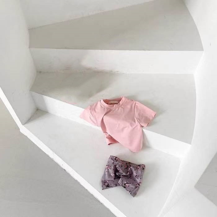 • 핑크 반팔 수영복 T + 보라색 꽃 수영 트렁크