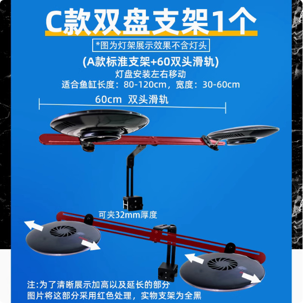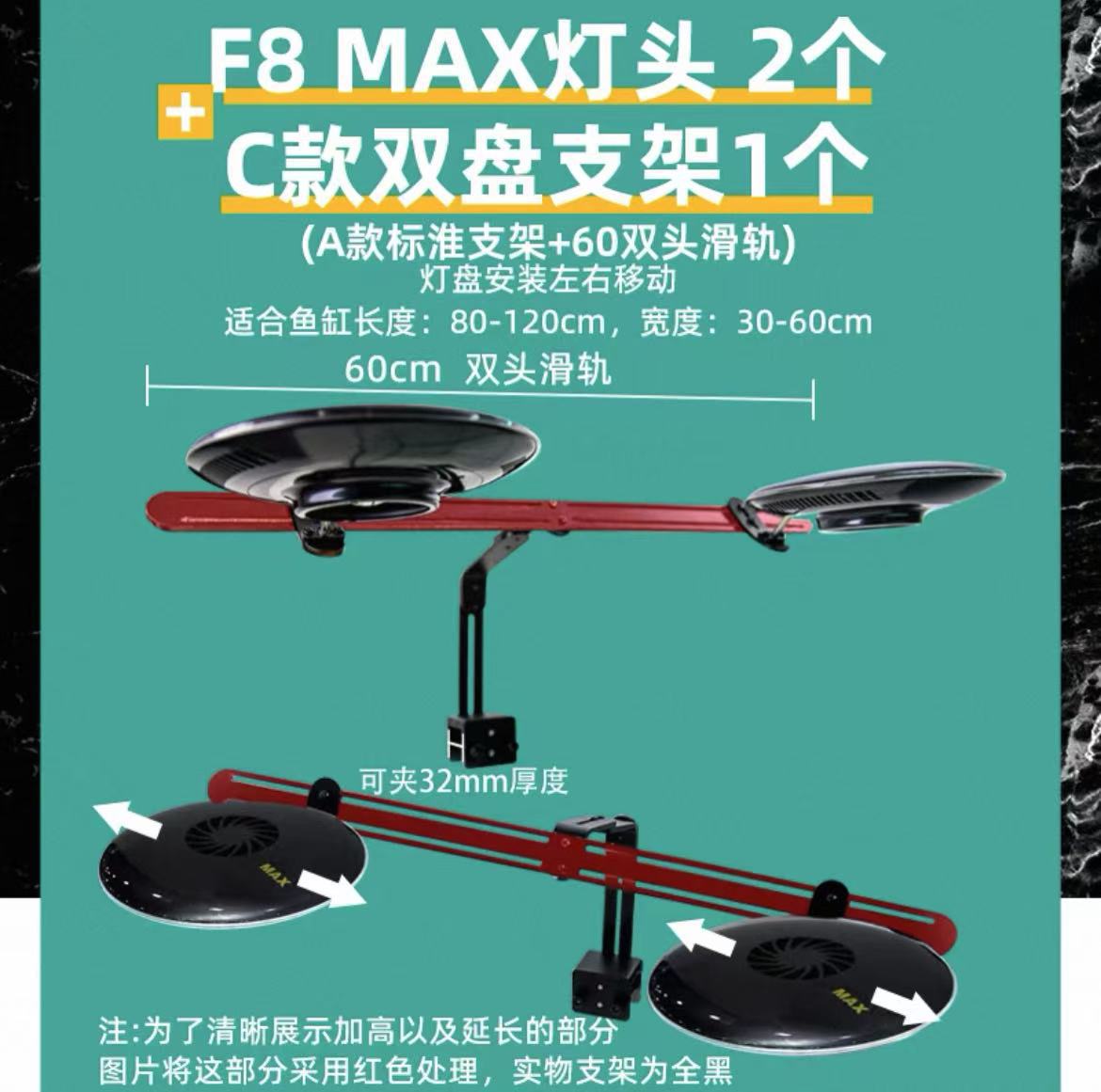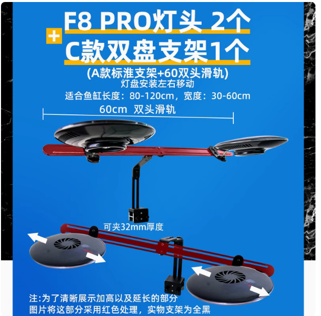 • 신형 F8 MAX 램프 헤드 2개 + C형 더블 플레이트 지지대 1개, 조사 범위 80-120cm