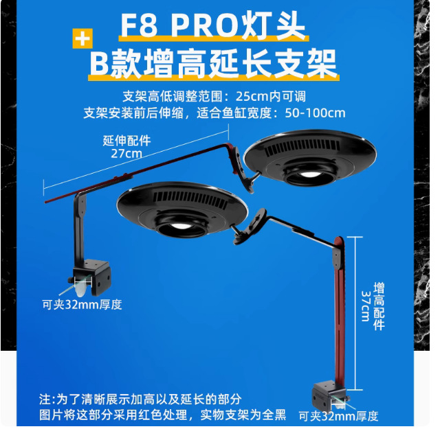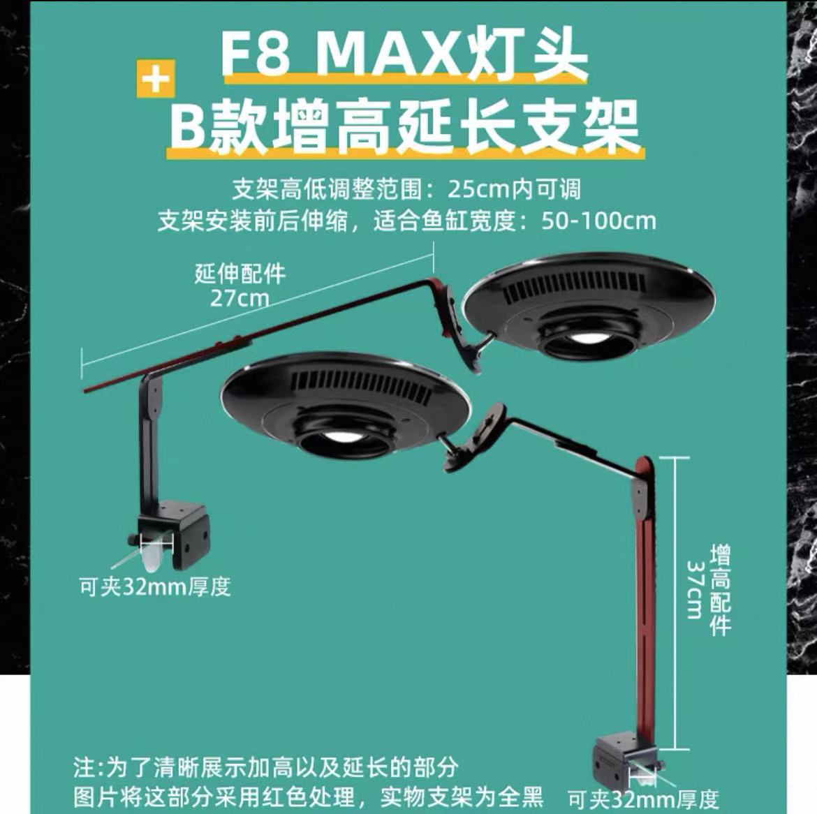 • 신형 F8 MAX 램프 헤드 + B형 높이 확장 지지대, 조사 범위 50-100cm