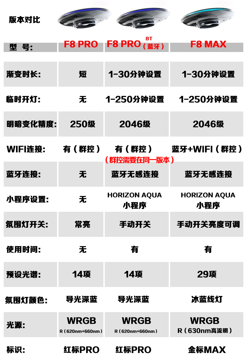누적 빛 UFO 새로운 F8 PRO 물 잔디 램프 와이파이 비행 접시 램프 ZE8500F/ZE8600F 열대 우림 램프 담수 램프