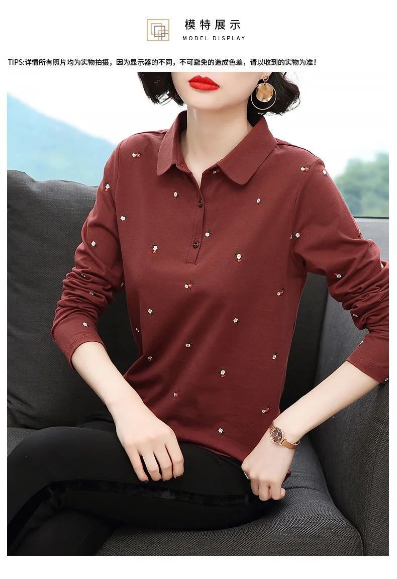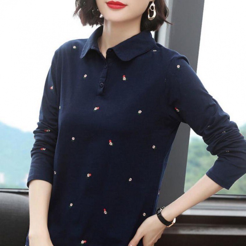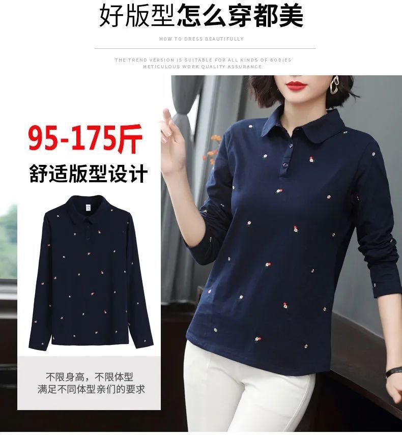 폴로 셔츠 긴팔 티셔츠 여성용 루즈한 플러스 사이즈 어머니의 봄 2032 새로운 티셔츠 슬리밍 탑 베이스 셔츠스토어 가기