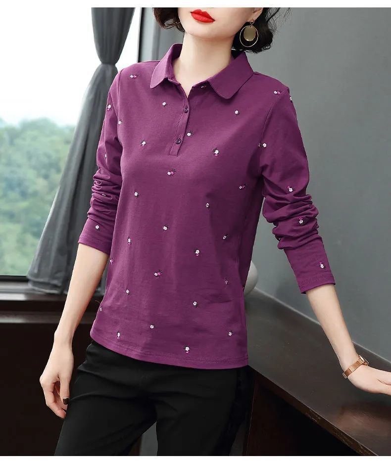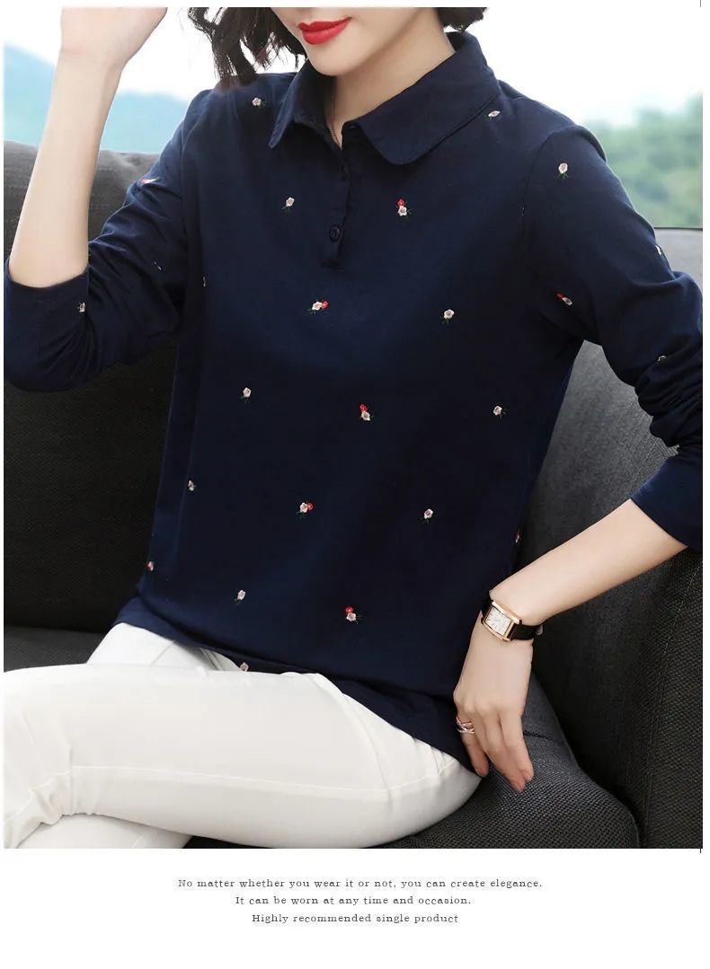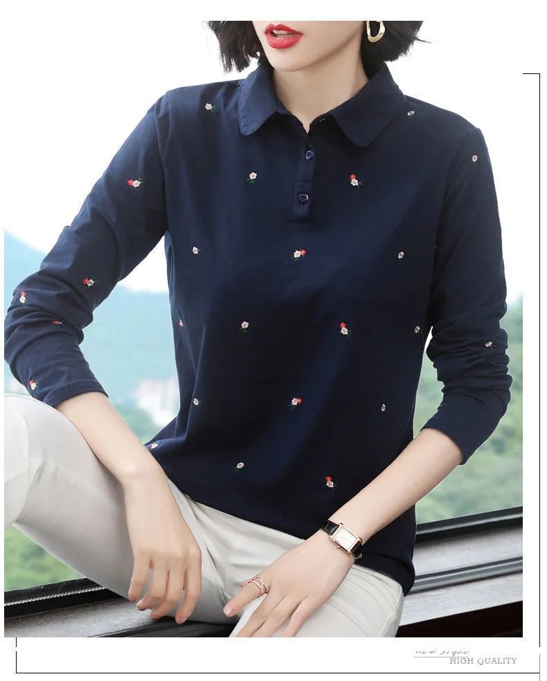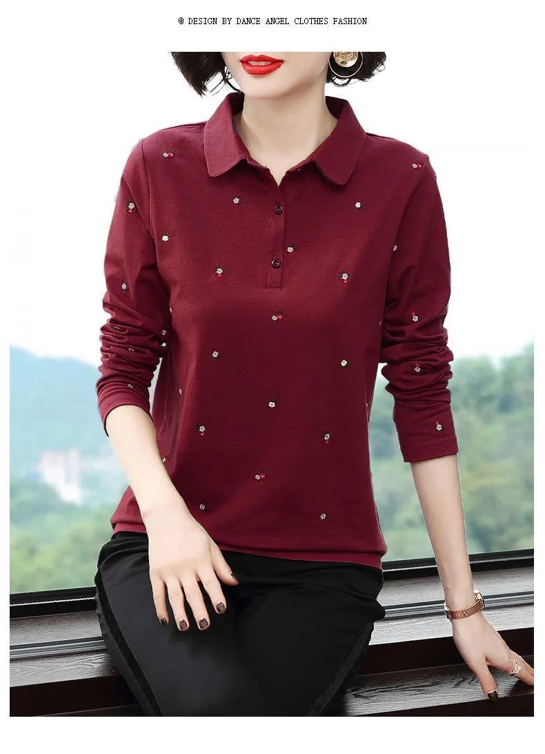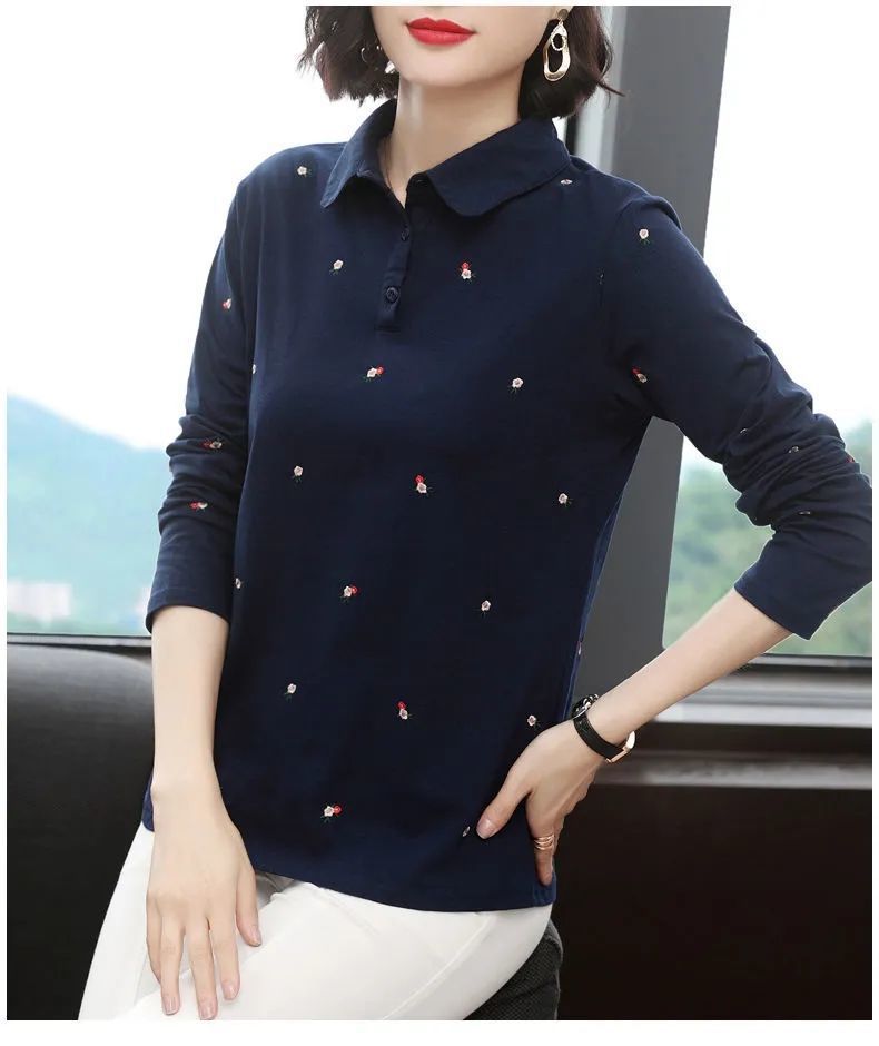 폴로 셔츠 긴팔 티셔츠 여성용 루즈한 플러스 사이즈 어머니의 봄 2032 새로운 티셔츠 슬리밍 탑 베이스 셔츠