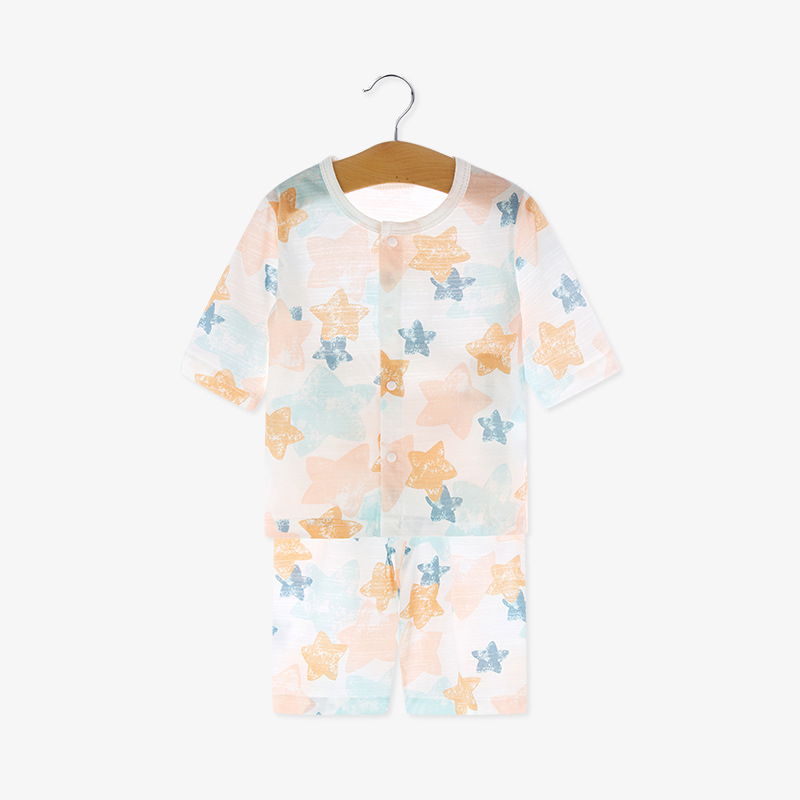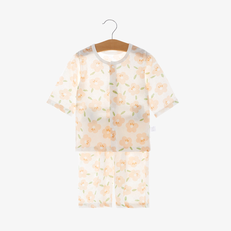 아기 소년 소녀 여름 옷 세트 순면 얇은 분할 어린이 잠옷 여름 어린이 에어컨 옷 중간 소매 가정 옷