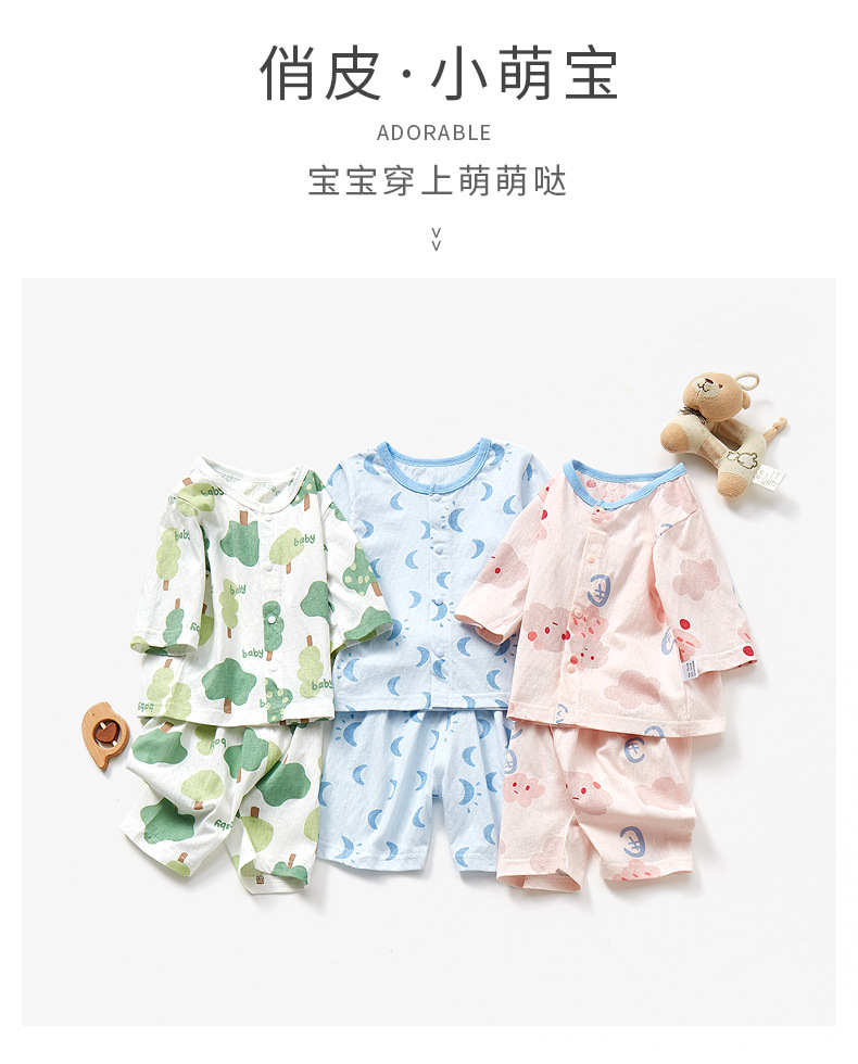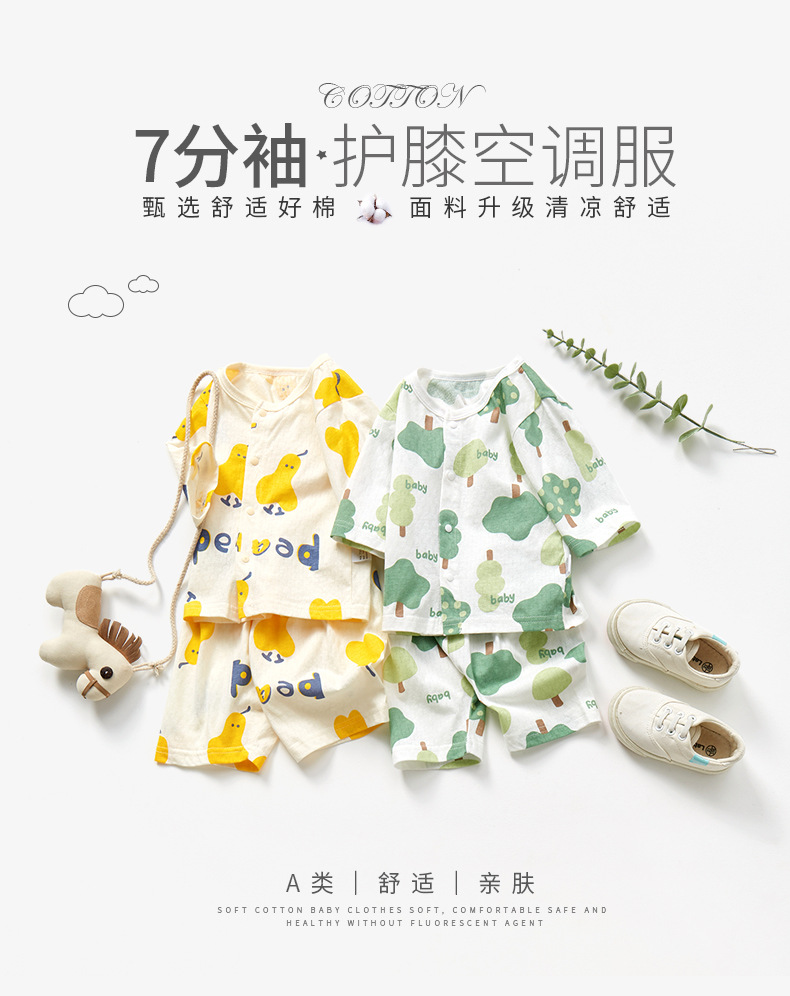 아기 소년 소녀 여름 옷 세트 순면 얇은 분할 어린이 잠옷 여름 어린이 에어컨 옷 중간 소매 가정 옷스토어 가기