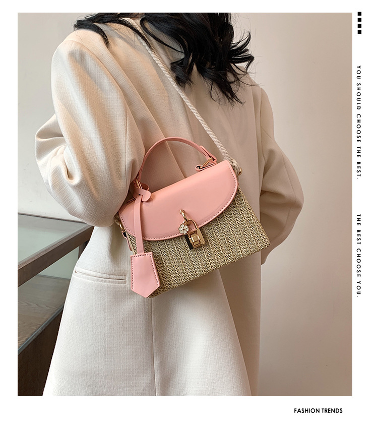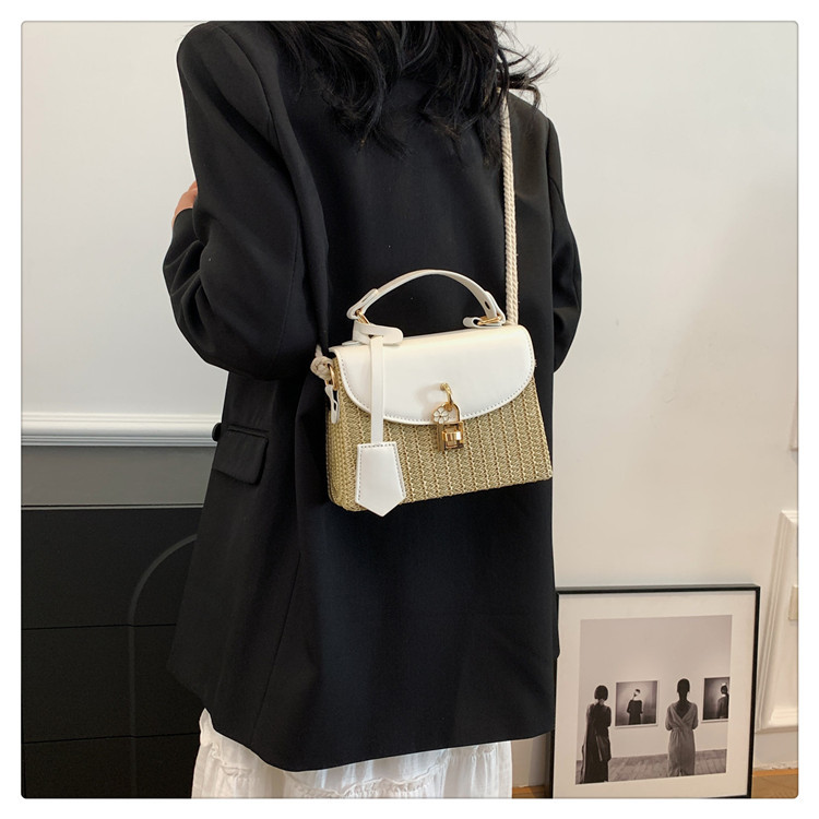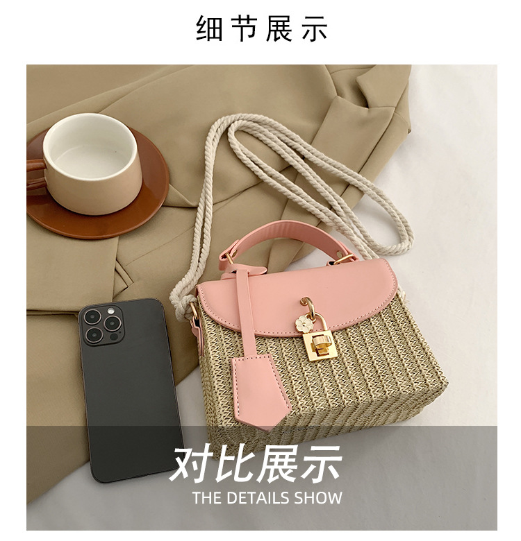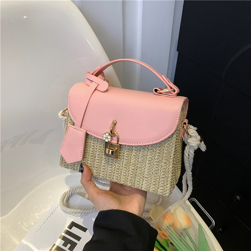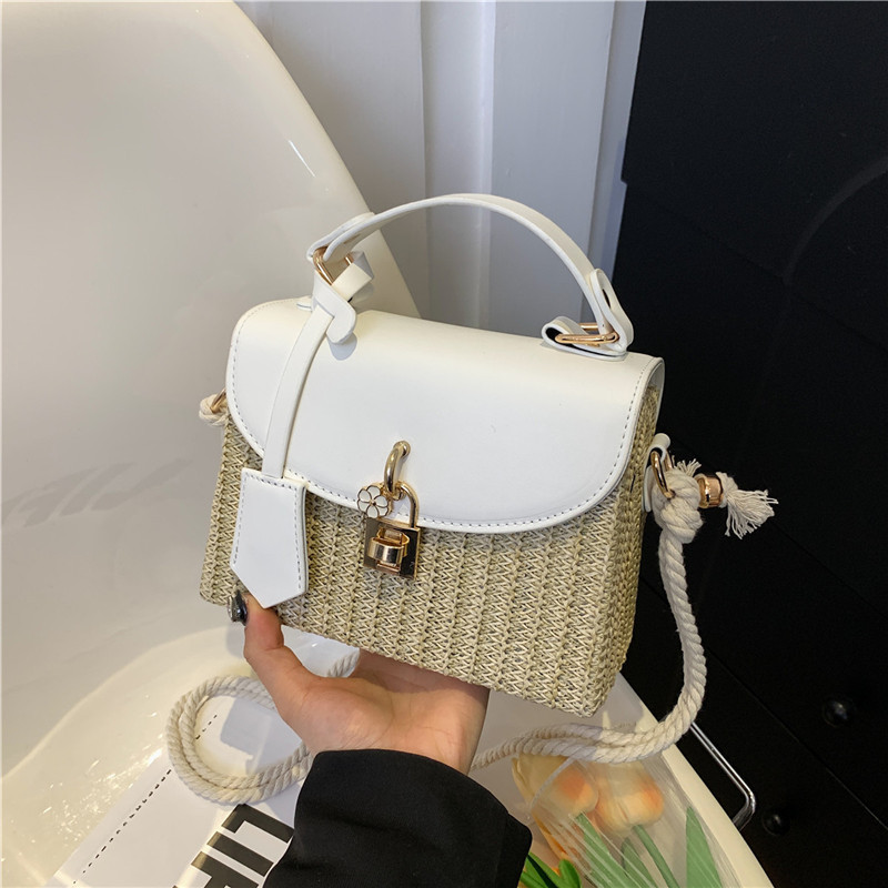 여성용 가방 2025 새로운 스타일 밀짚 상자 가방 세련된 꽃 잠금 버튼 싱글 숄더 크로스 바디 작은 사각형 가방 휴대용 여성용 가방