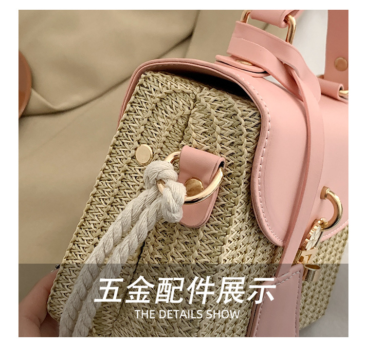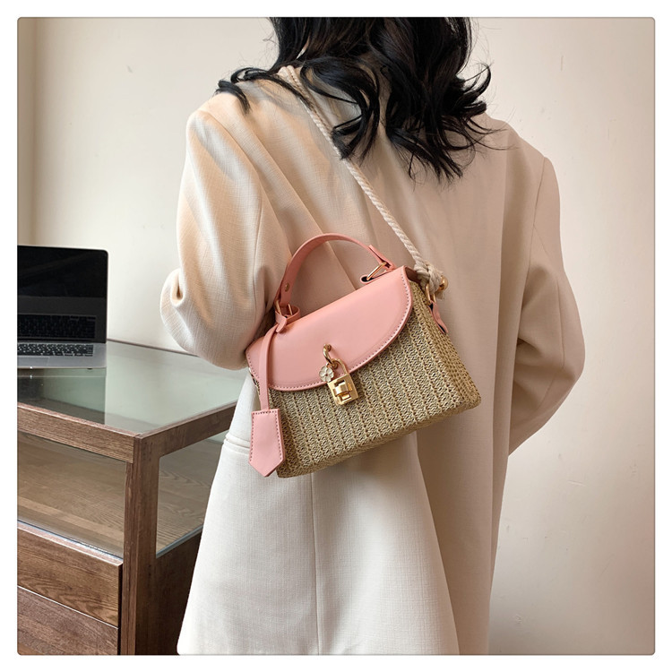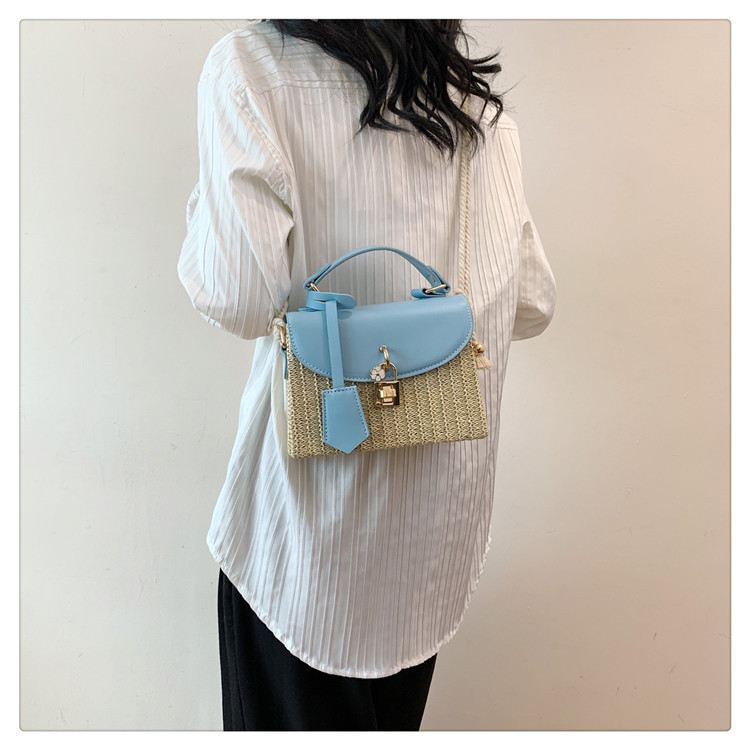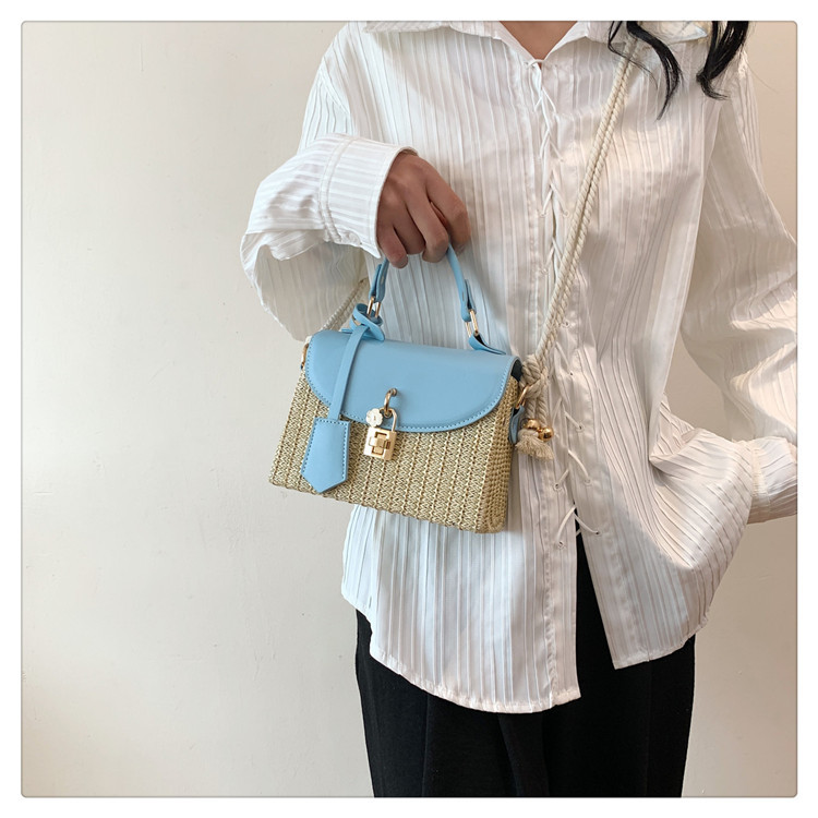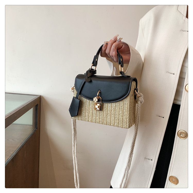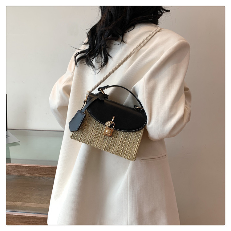 여성용 가방 2025 새로운 스타일 밀짚 상자 가방 세련된 꽃 잠금 버튼 싱글 숄더 크로스 바디 작은 사각형 가방 휴대용 여성용 가방