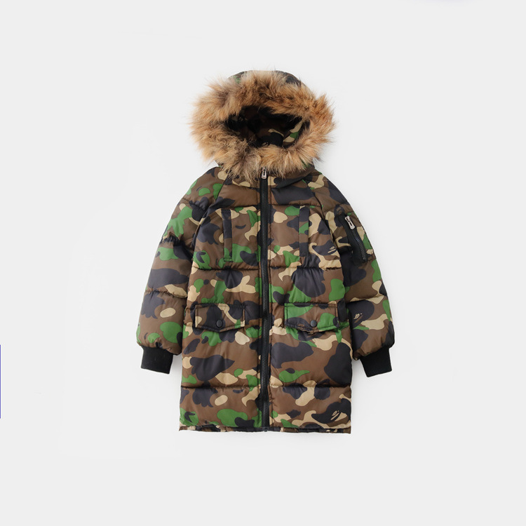 가을 겨울 아동용 위장 면 코트, 두꺼운 모피 칼라, 남아 및 여아용 따뜻한 면 코트, 중대형 아동용 면 패딩 재킷