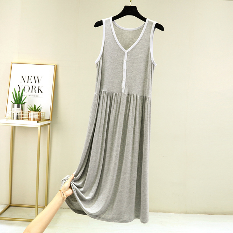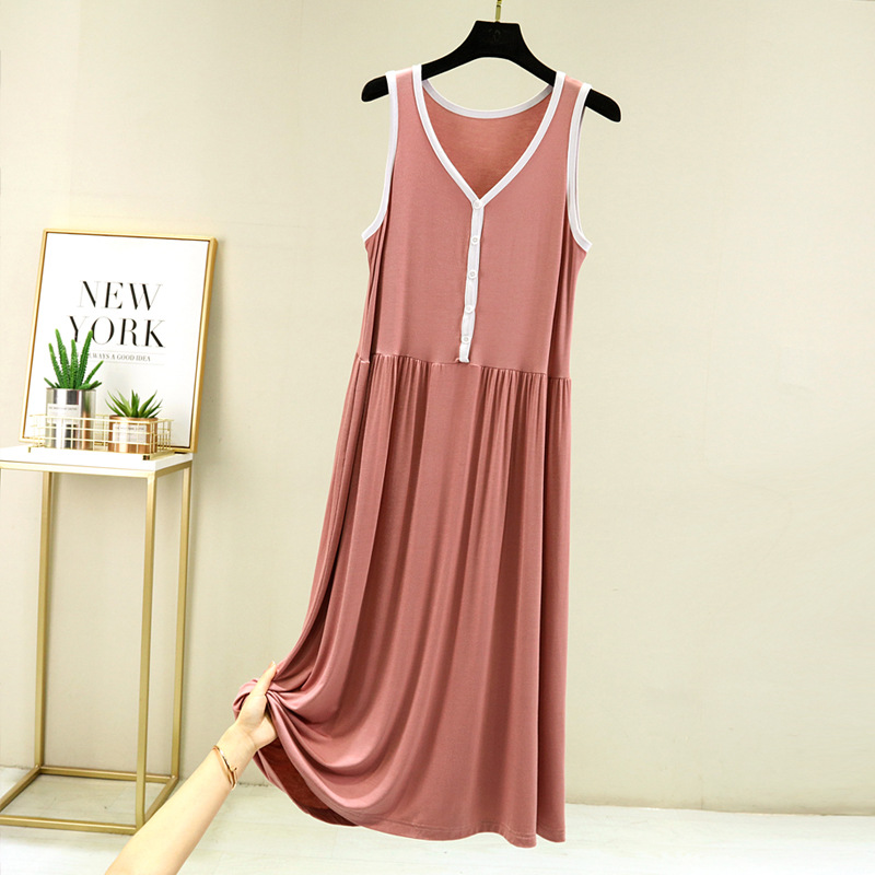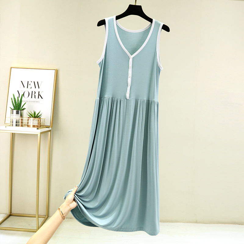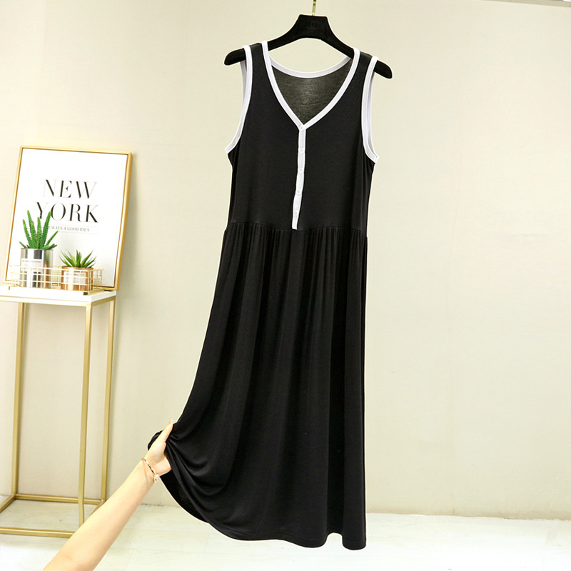 민소매 조끼 원피스 여름 서양식 플러스 사이즈 슬림베이스 스커트 V-넥 대형 스윙 롱 원피스 모달 슬링 원피스스토어 가기