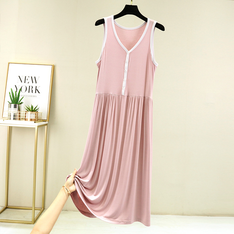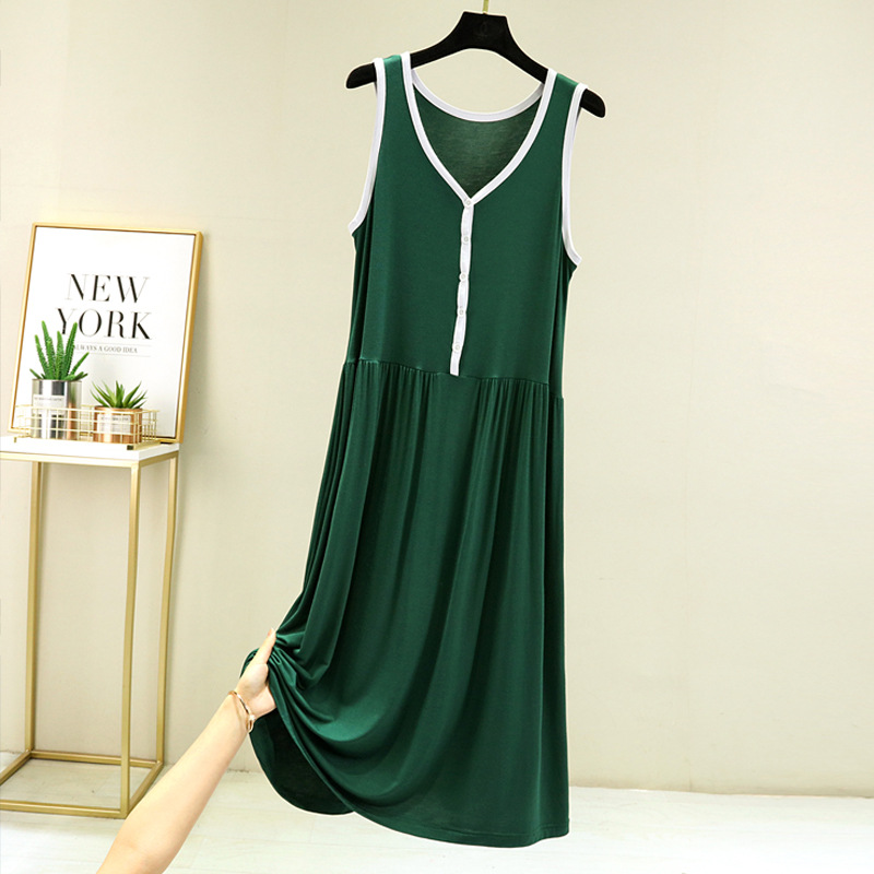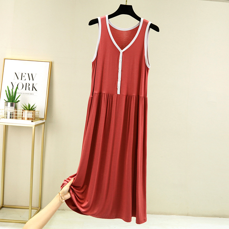 민소매 조끼 원피스 여름 서양식 플러스 사이즈 슬림베이스 스커트 V-넥 대형 스윙 롱 원피스 모달 슬링 원피스