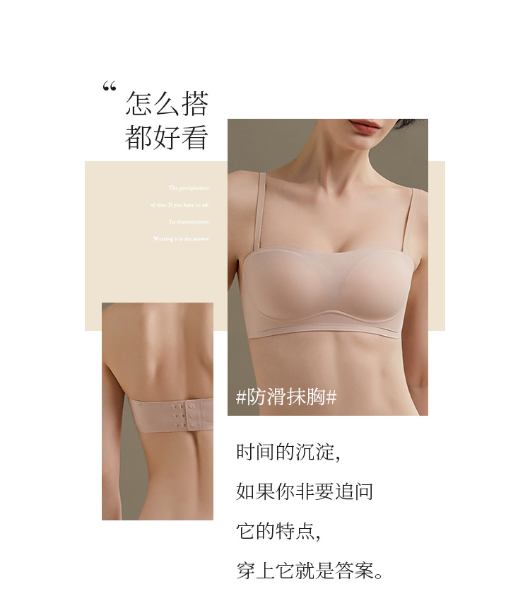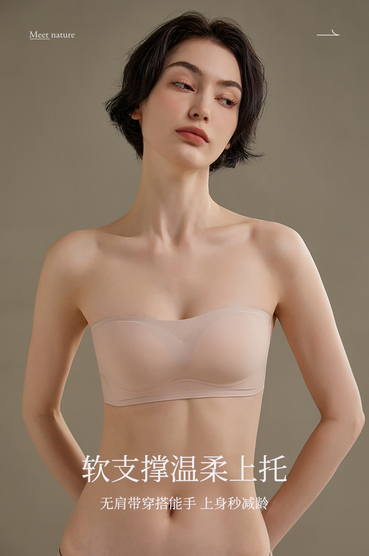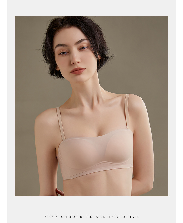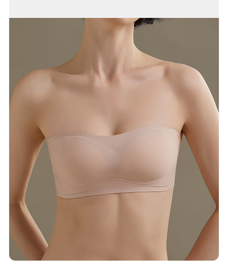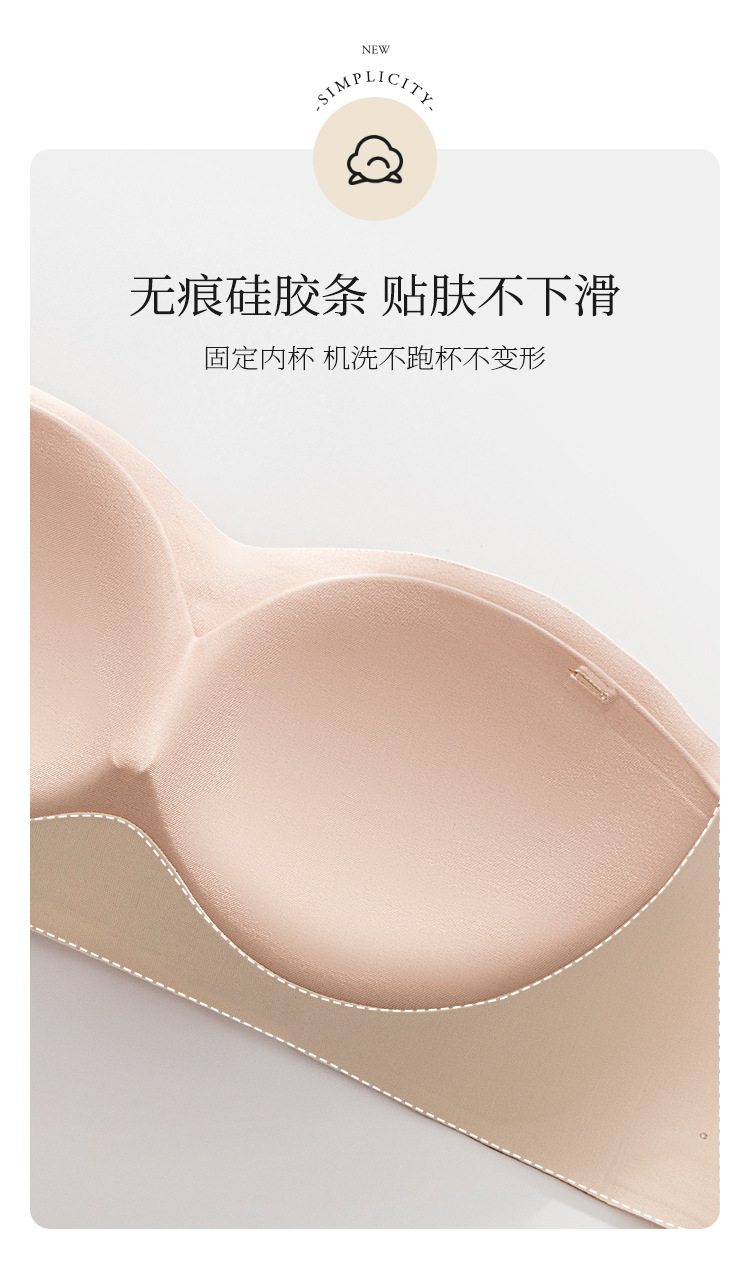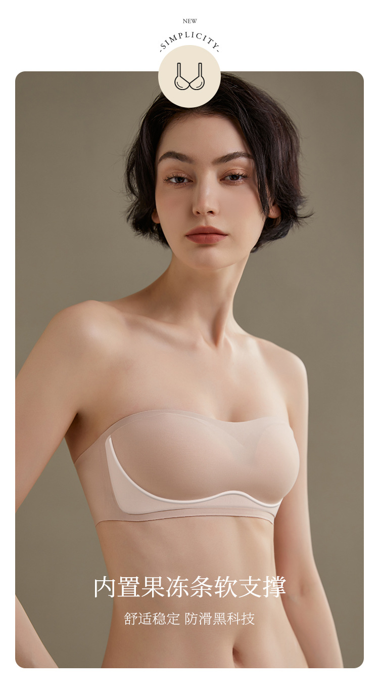 끈 없는 여성용 브라, 무봉제 젤 소재, 부드러운 지지력, 미끄럼 방지, 작은 가슴을 모아주고 처짐 방지