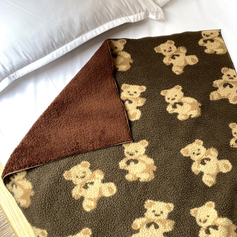 Ins 귀여운 곰 양면 양고기 벨벳 담요 가을, 겨울 두꺼운 어린이 담요 캐주얼 자동차 낮잠 만화 담요스토어 가기