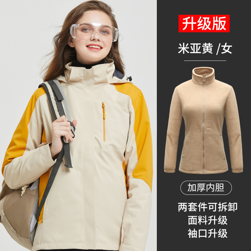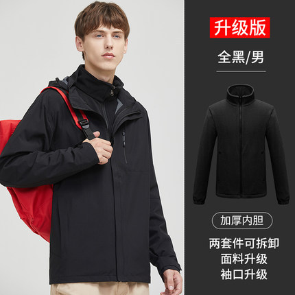 남녀공용 방풍 재킷, 양털 안감과 두꺼운 소재로 된 투피스 3-in-1 방수 통기성 등산 재킷, 로고 인쇄 가능