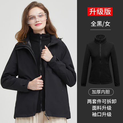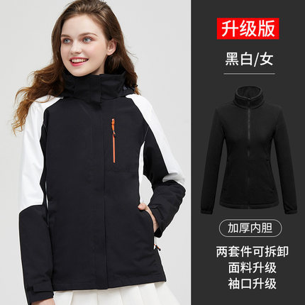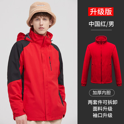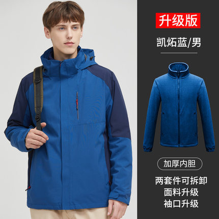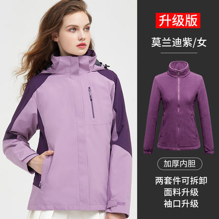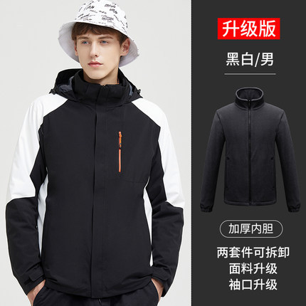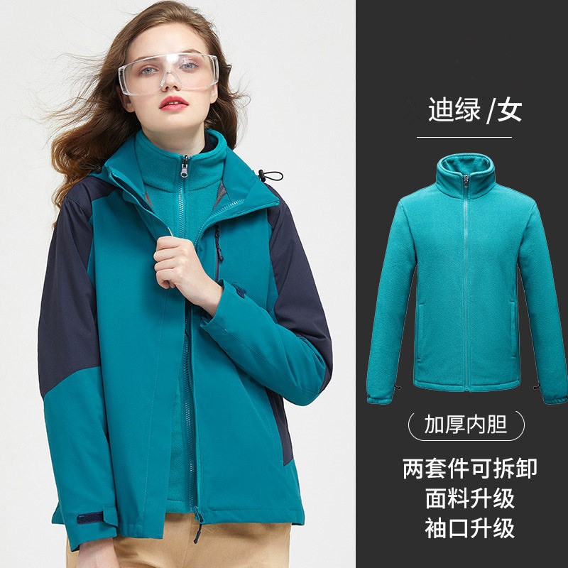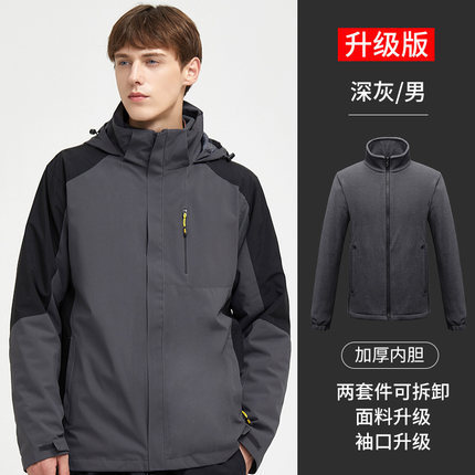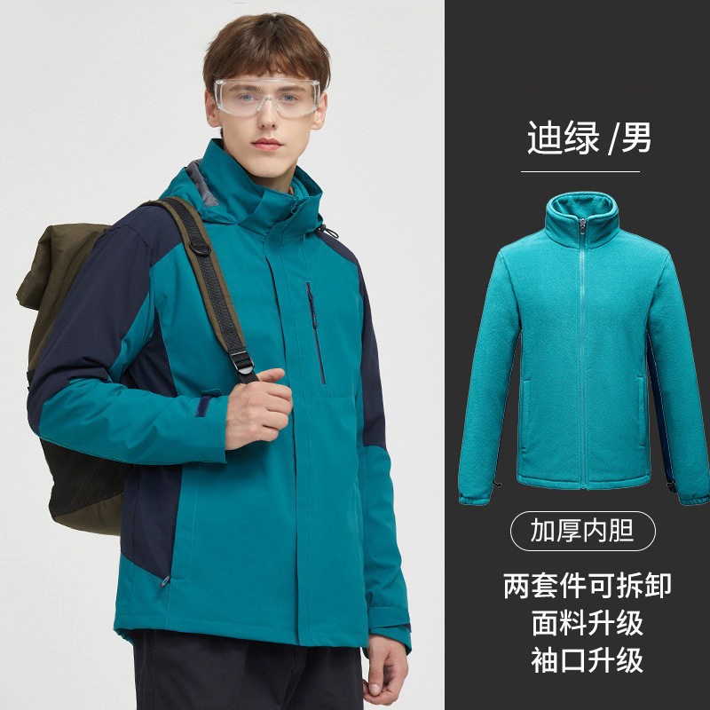 남녀공용 방풍 재킷, 양털 안감과 두꺼운 소재로 된 투피스 3-in-1 방수 통기성 등산 재킷, 로고 인쇄 가능스토어 가기