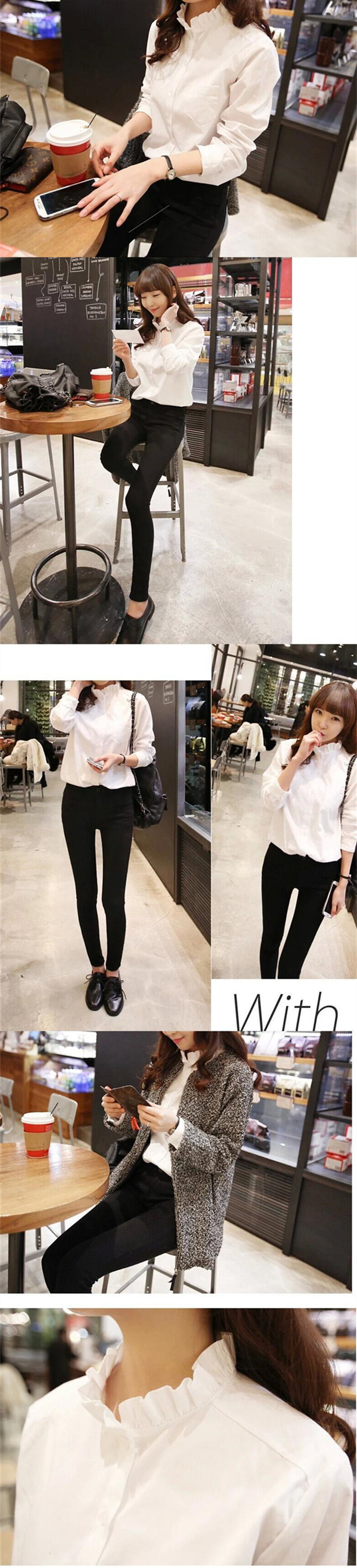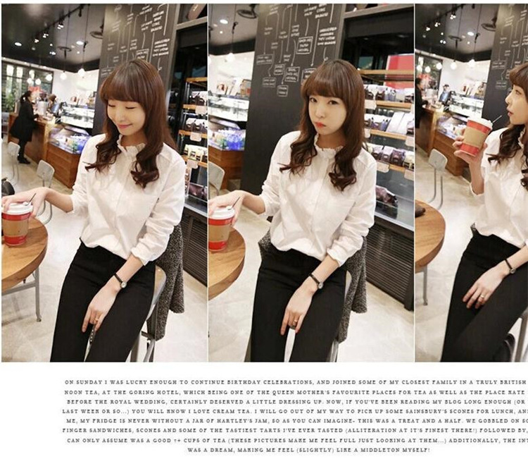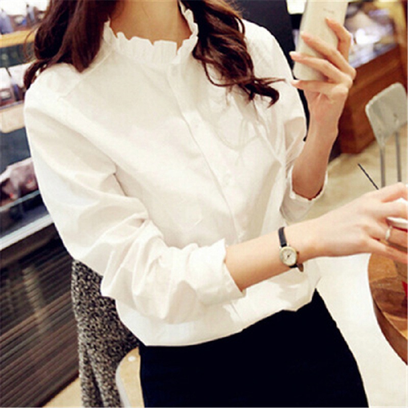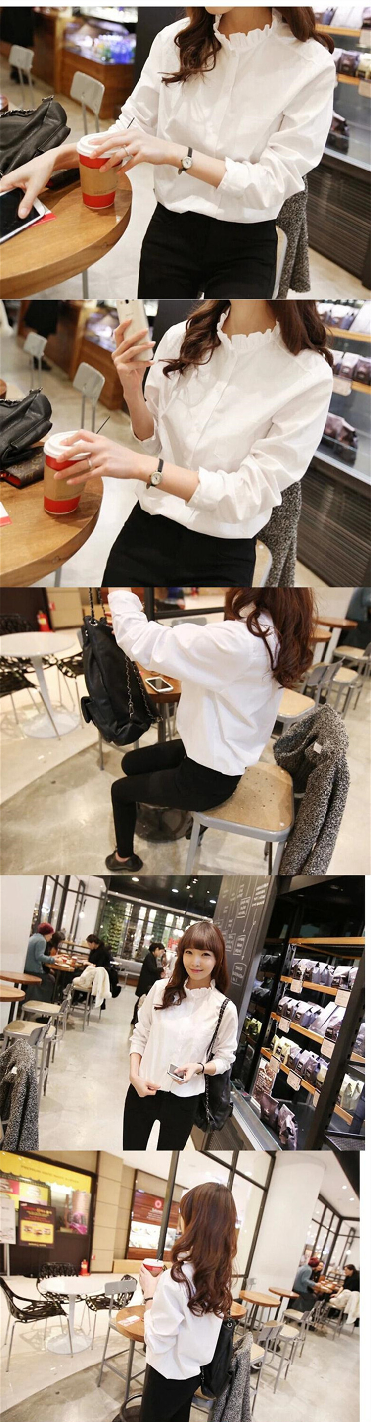 2023 봄 패션 새로운 서양식 화이트 우드 이어 칼라베이스 셔츠 여성의 디자인 감각 틈새 우아한 탑스토어 가기