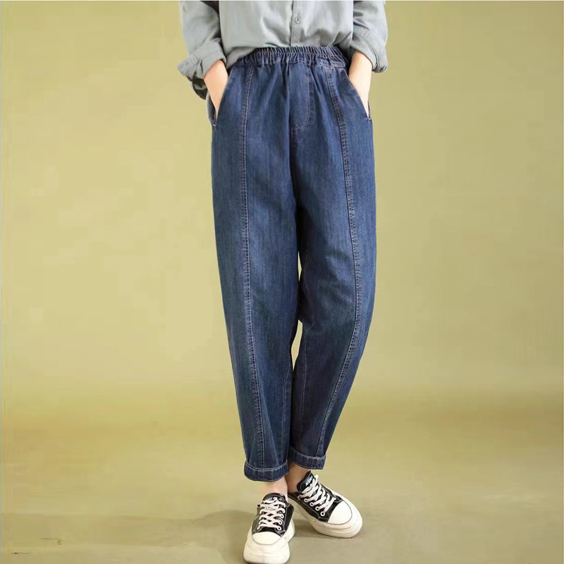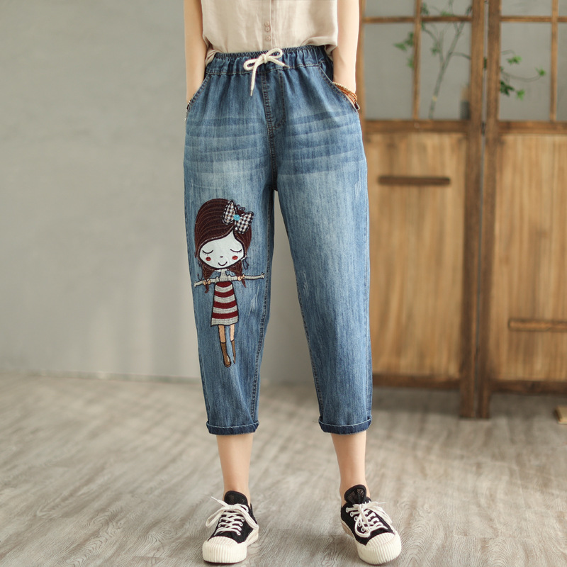 수 놓은 얇은 청바지 여자의 새로운 빈티지 찢어진 플러스 사이즈 슬림 룩 청바지 여자의 스트레치 허리 Harlan 크롭 바지스토어 가기