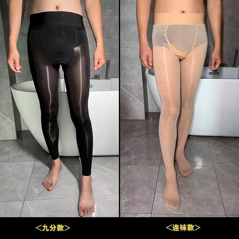 남자의 9 점 말 기름 스타킹 안티 후크 실크 오일 밝은 부드러운 울트라 씬 아이스 실크 플러스 사이즈 팬티 스타킹 섹시한 9 점 바지스토어 가기