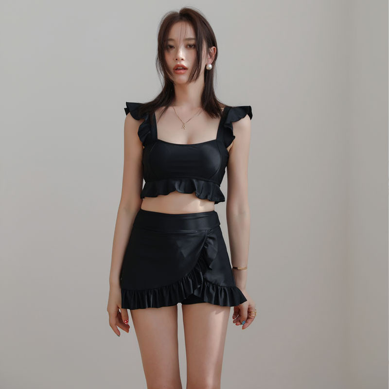 일본식 샤넬 스타일 비키니 섹시한 귀 가장자리 하이 웨이스트 배꼽 취재 여성을위한 유행 학생 스포츠 분할 수영복스토어 가기