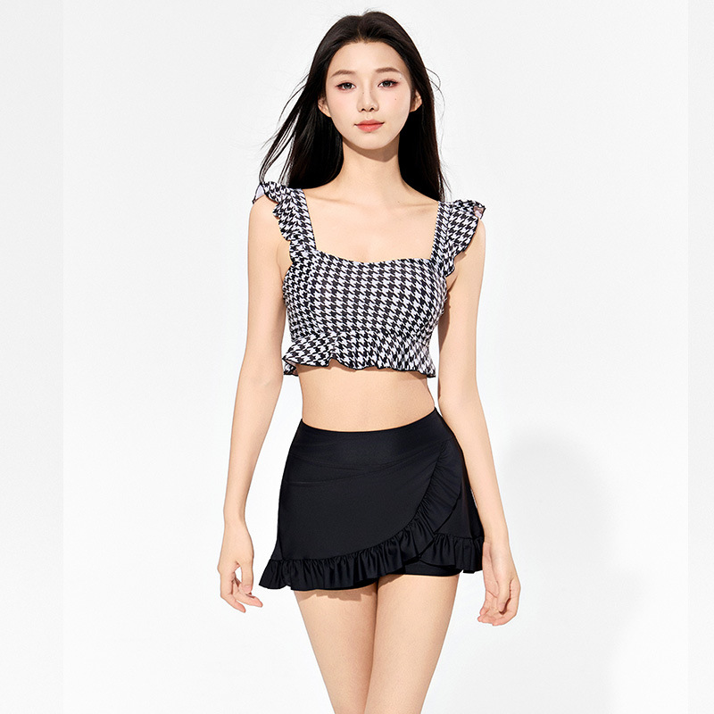 일본식 샤넬 스타일 비키니 섹시한 귀 가장자리 하이 웨이스트 배꼽 취재 여성을위한 유행 학생 스포츠 분할 수영복
