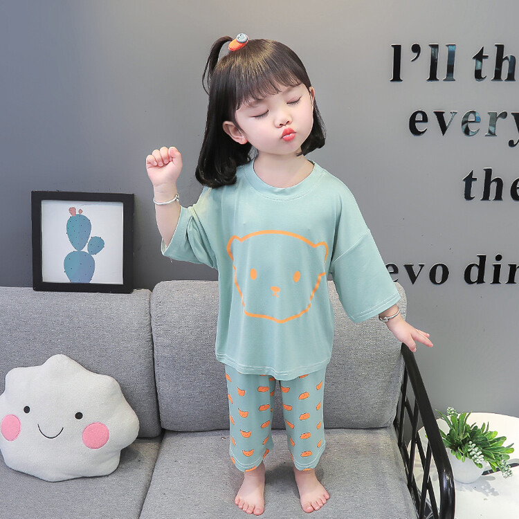 한국 어린이 잠옷 2022 여름 소년 소녀 아기 면 가정복 귀여운 어린이 소녀 에어컨 의류스토어 가기