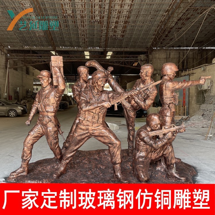 제조업체 맞춤형 유리 섬유 모조 구리 조각 레드 군인 인물 동상 연예인 초상화 전시관 장면 조각 장식품