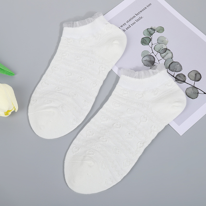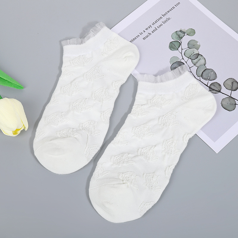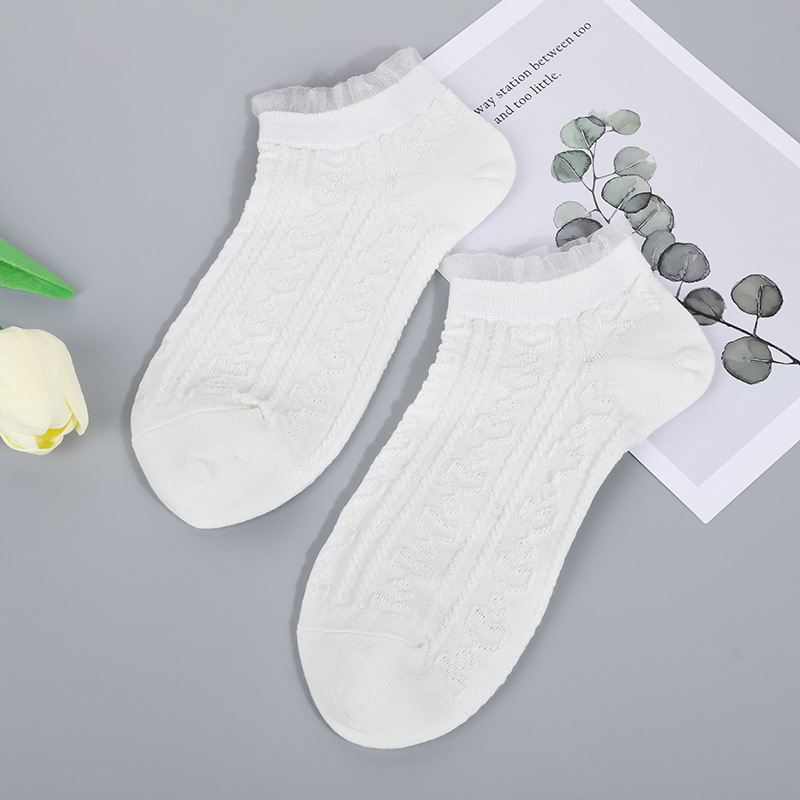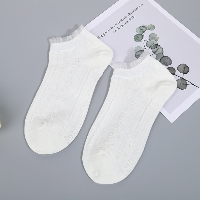 레이스 레이스 작은 흰색 양말 귀여운 봄과 여름 얇은 어두운 꽃 통기성 면 양말 여성 학생 얕은 입 짧은 보트 양말