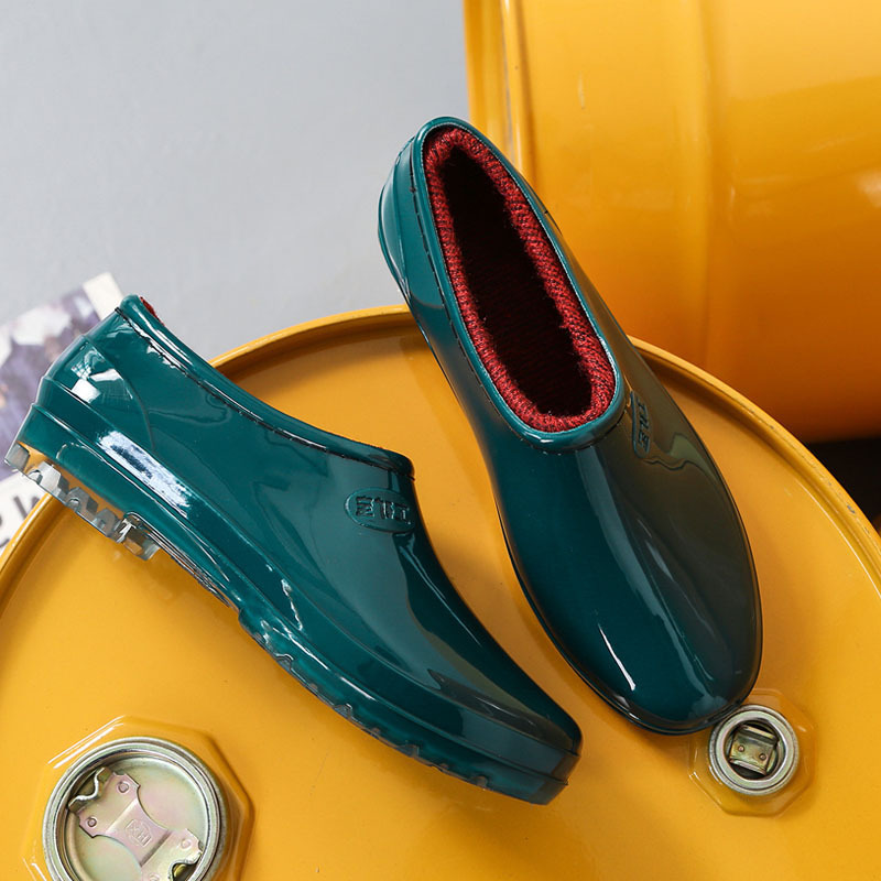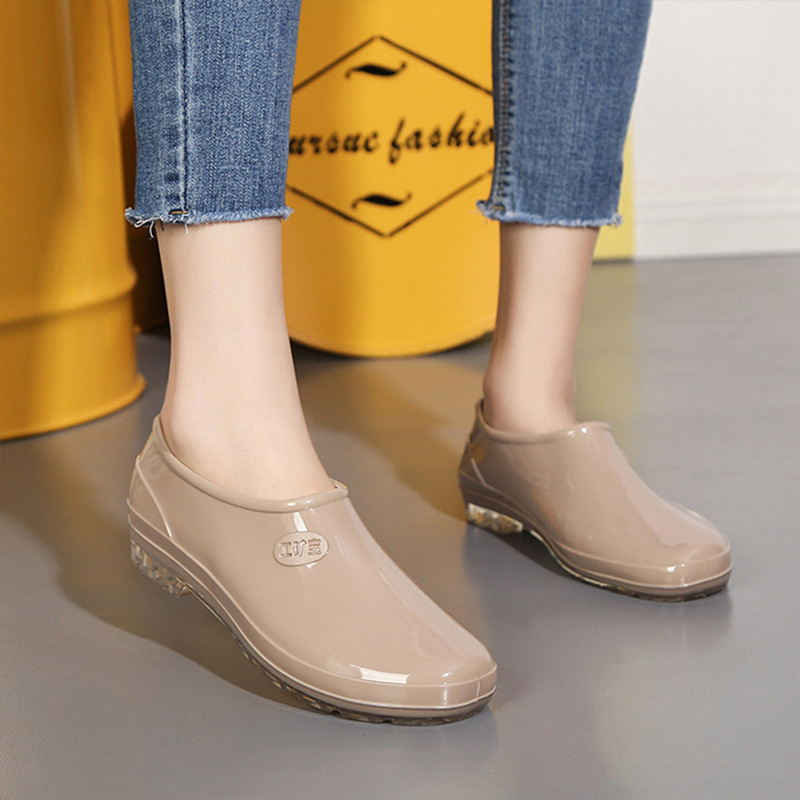 로우 탑 레인 슈즈 워터 슈즈 레인 부츠 고무 신발 여성 주방 미끄럼 방지 작업 방수 얕은 입 성인 플랫 짧은 튜브 오버 슈즈 여름