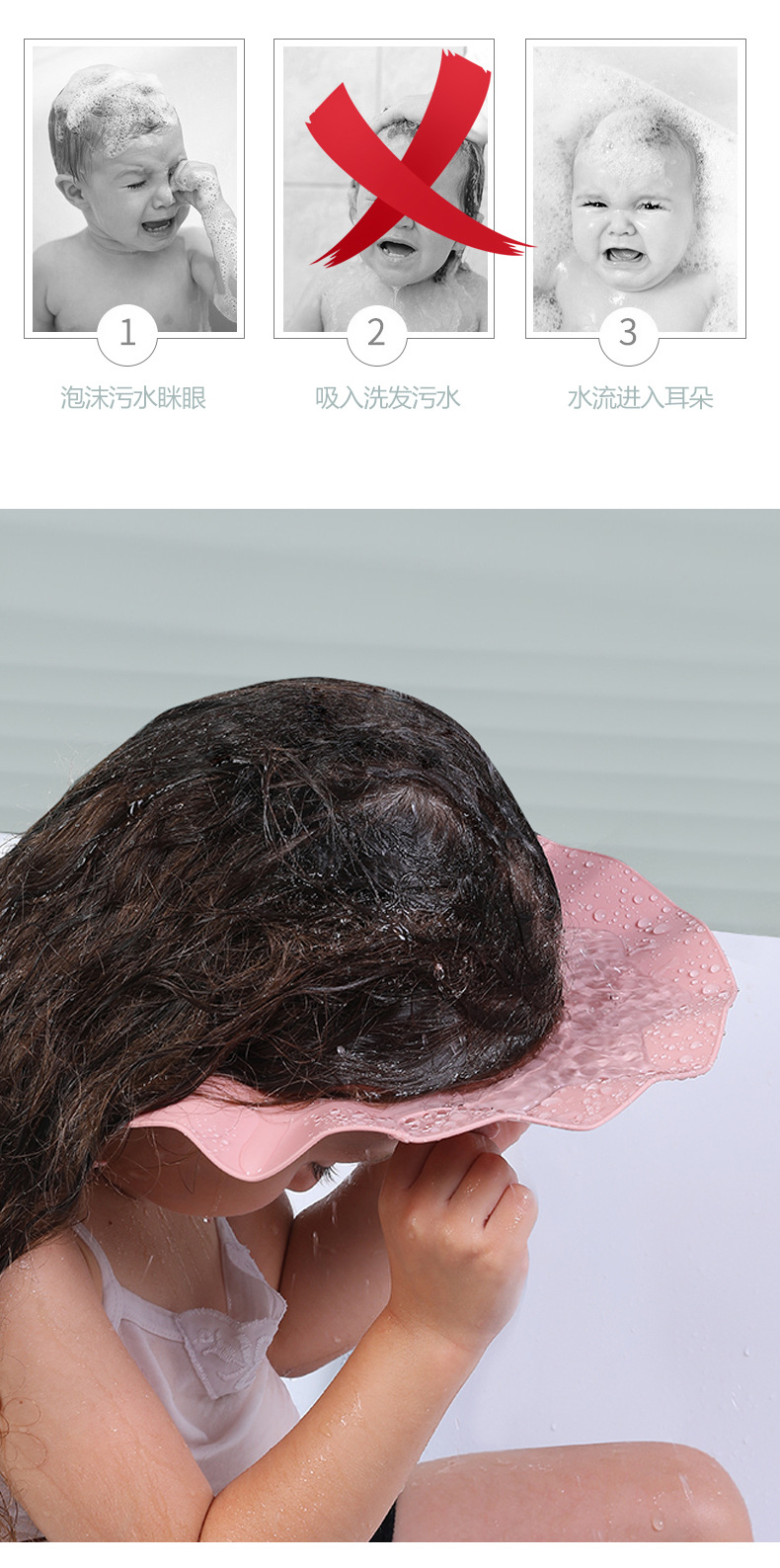 어린이를위한 크로스 보더 에어 쿠션 샴푸 캡 TPE 소프트 중공 비 교살 샴푸 캡 방수 유입 아이 샤워 캡