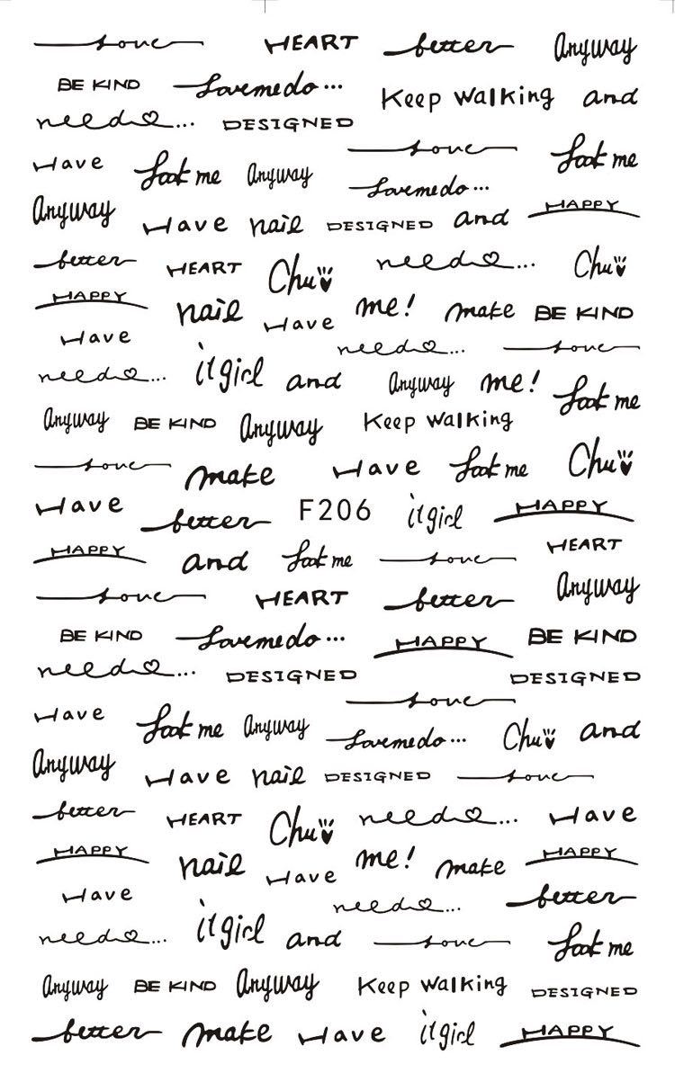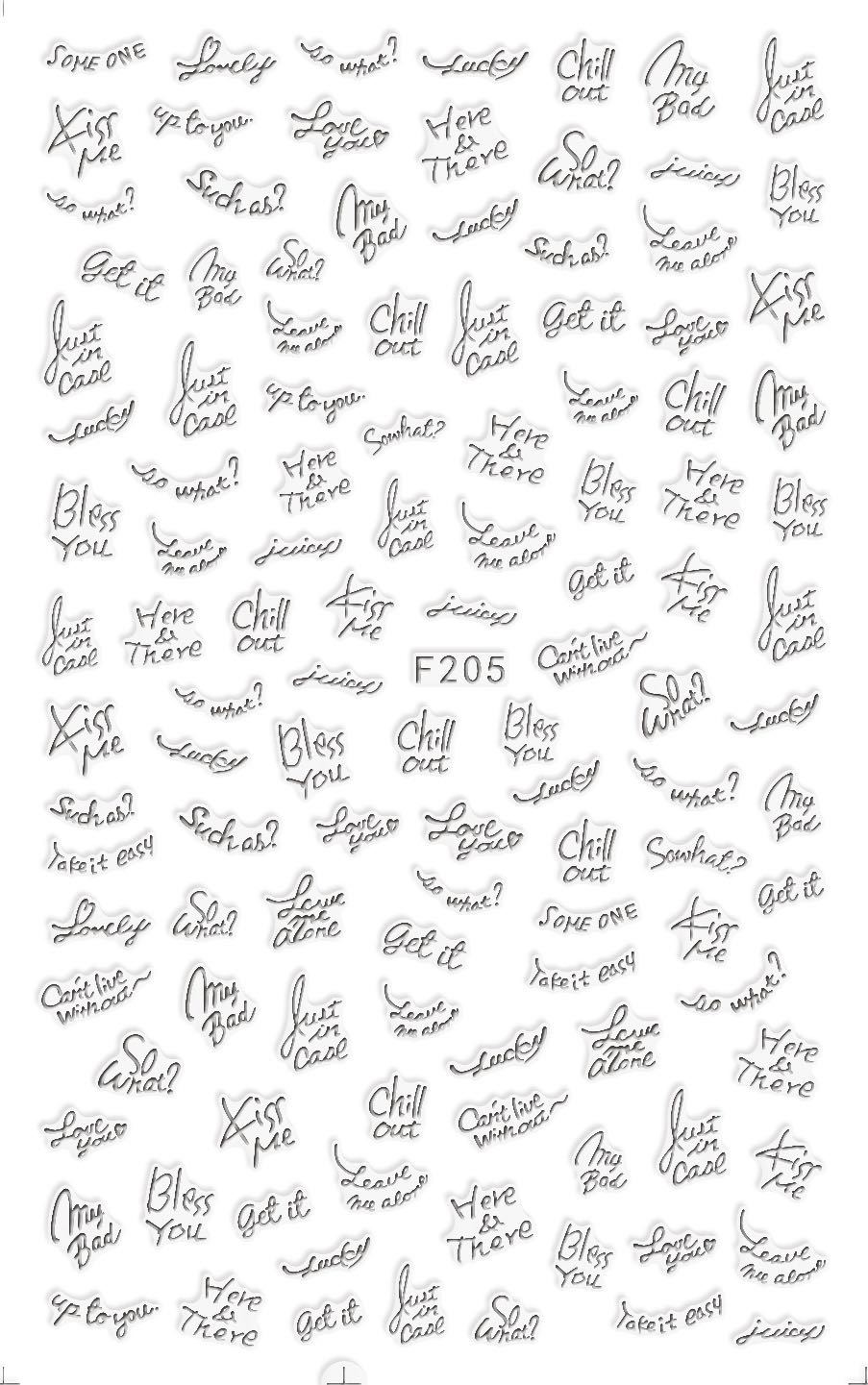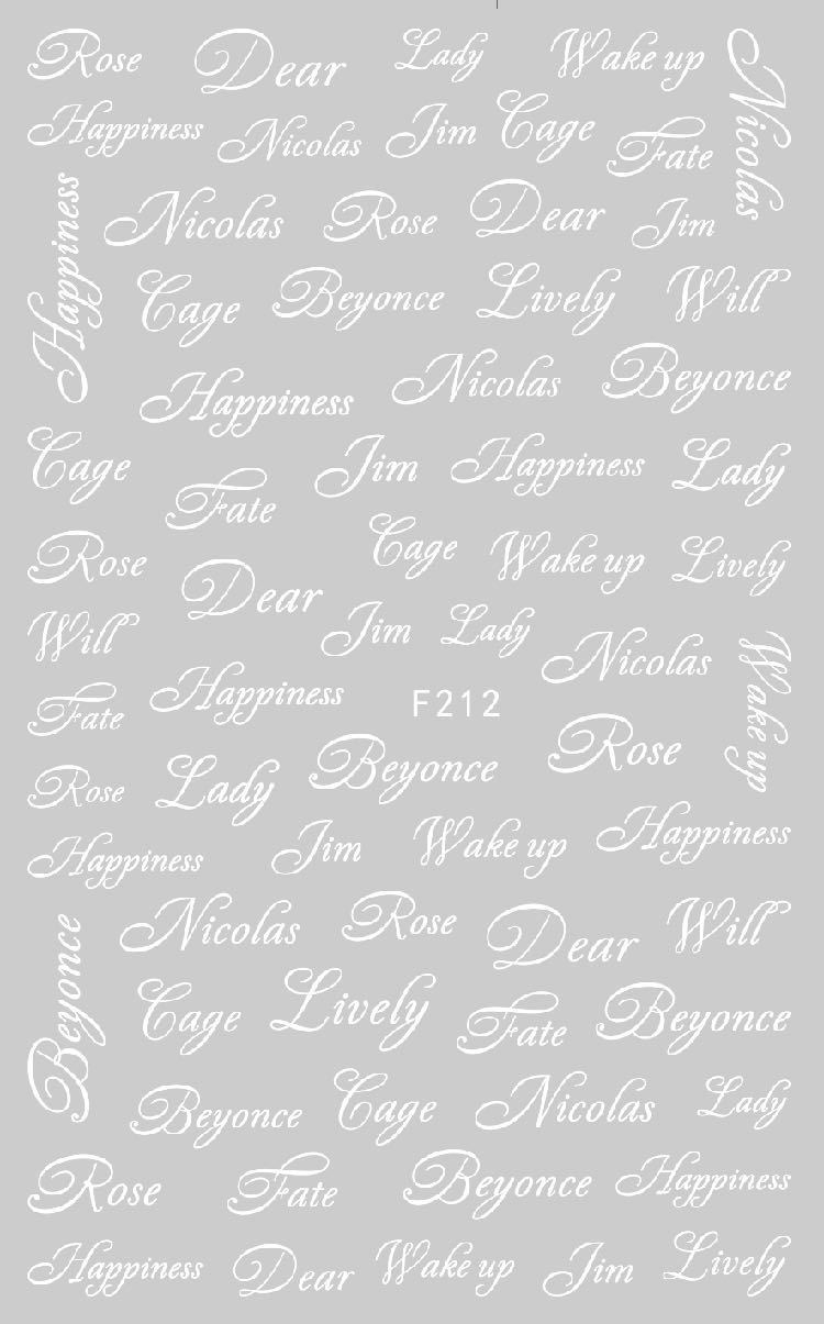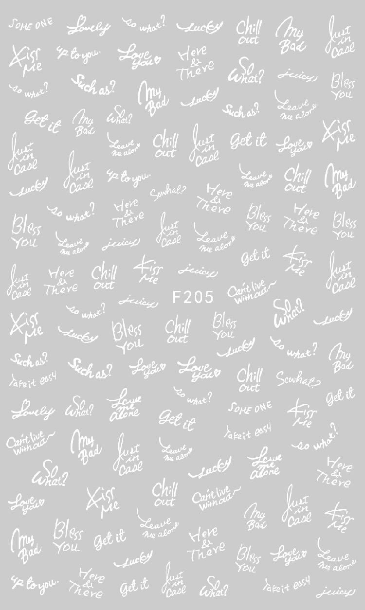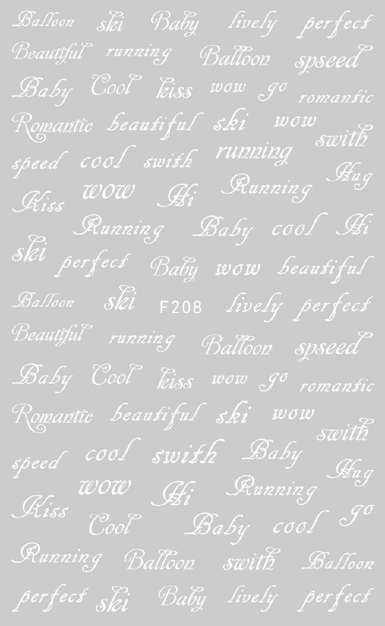 NAIL F205-212 일반적으로 사용되는 이탈리아어 블록 문자 필기 편지 네 가지 색상은 모두 NAIL 아트 접착 스티커를 갖추고 있습니다