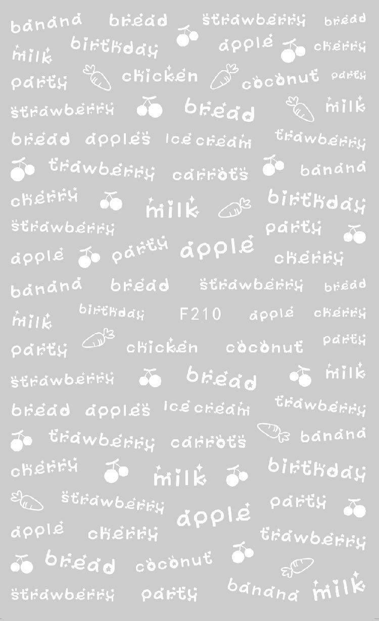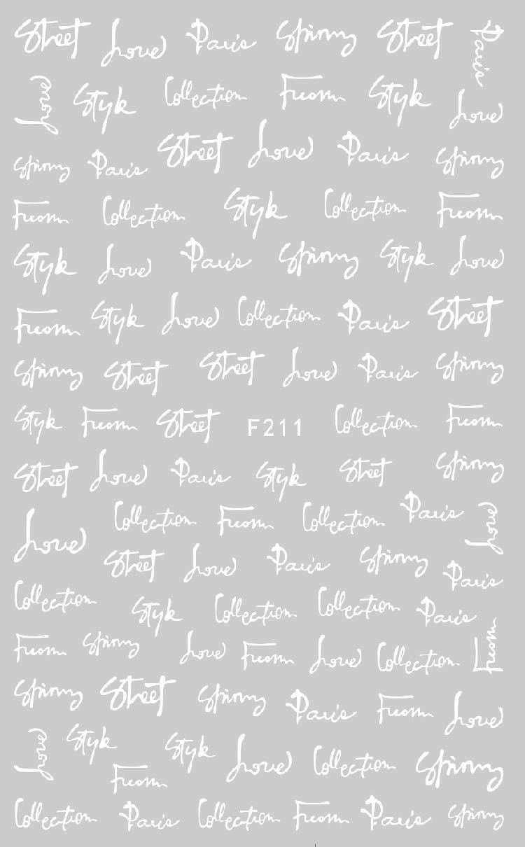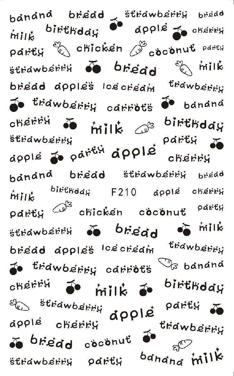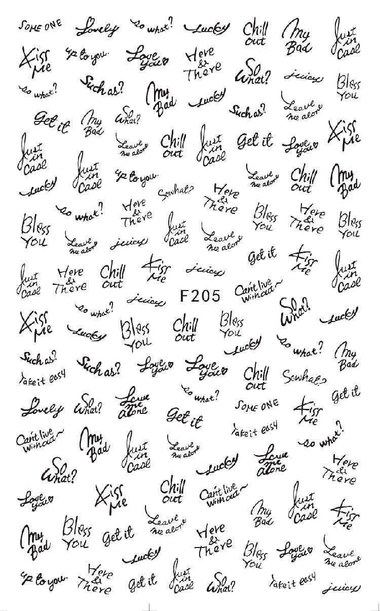 NAIL F205-212 일반적으로 사용되는 이탈리아어 블록 문자 필기 편지 네 가지 색상은 모두 NAIL 아트 접착 스티커를 갖추고 있습니다