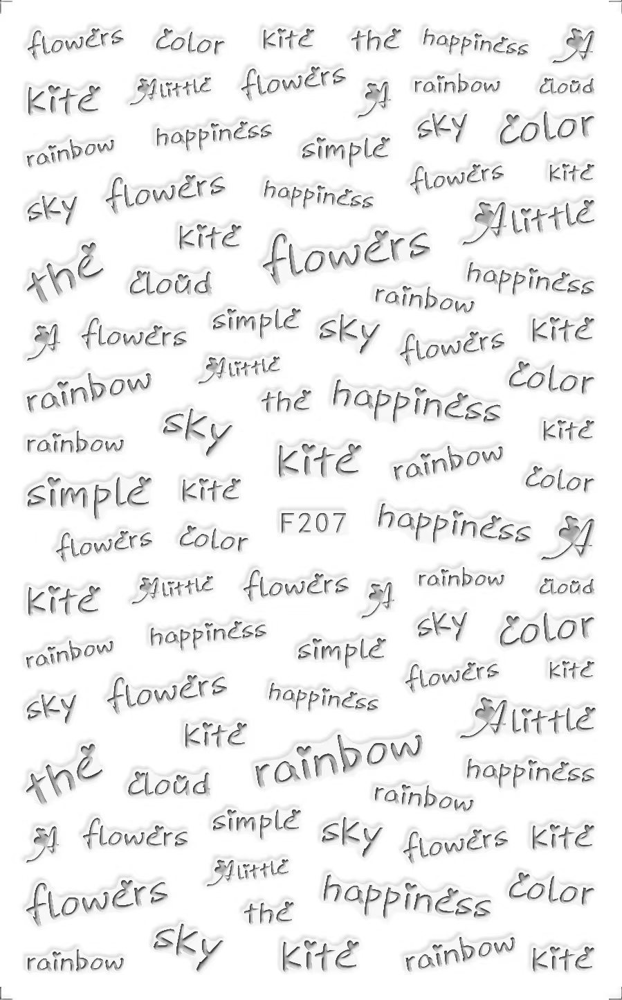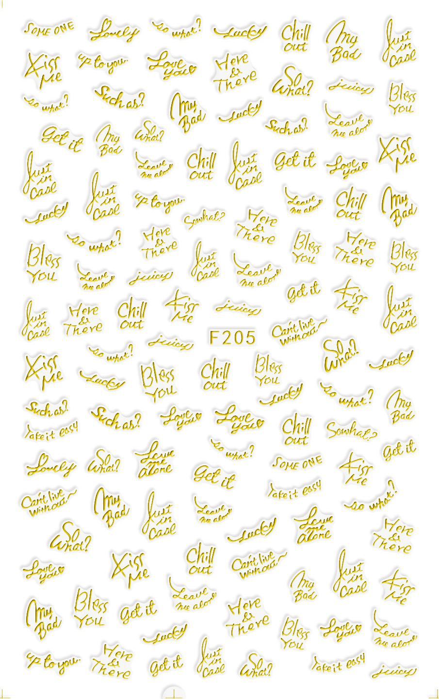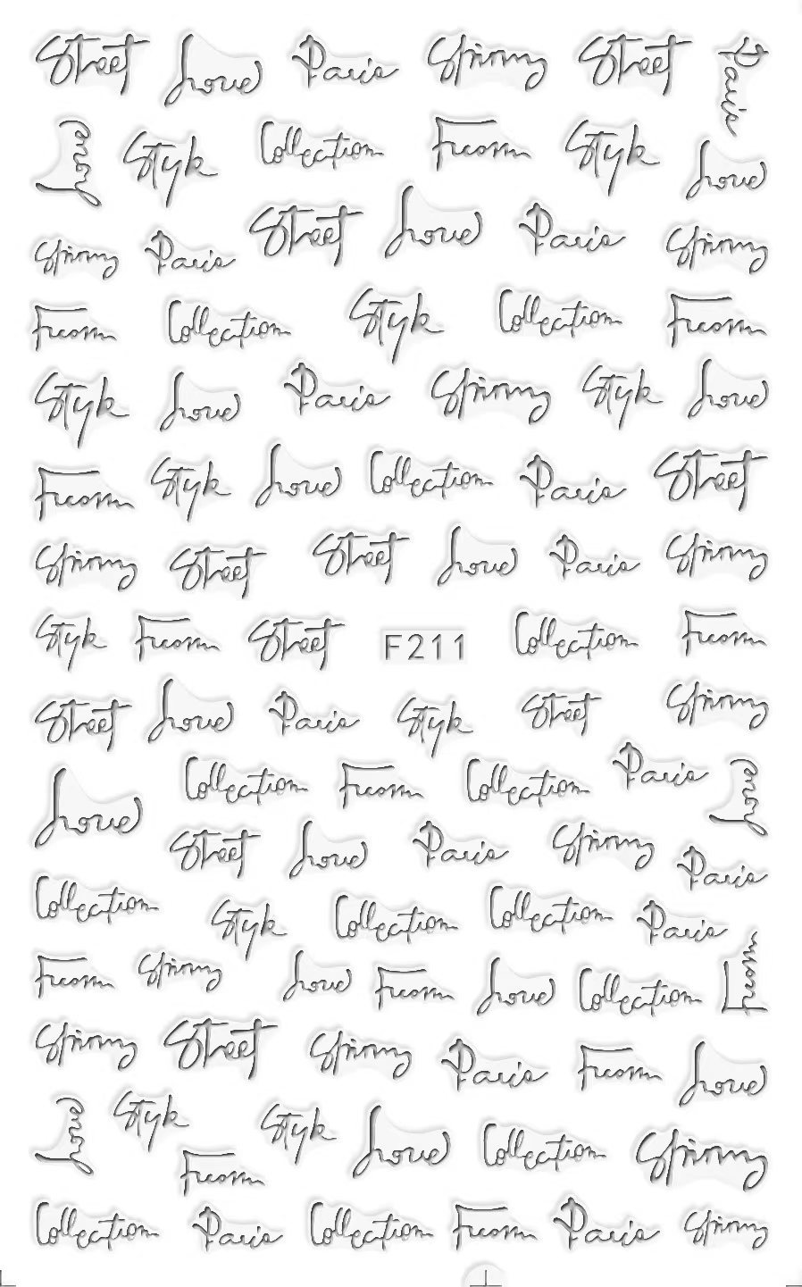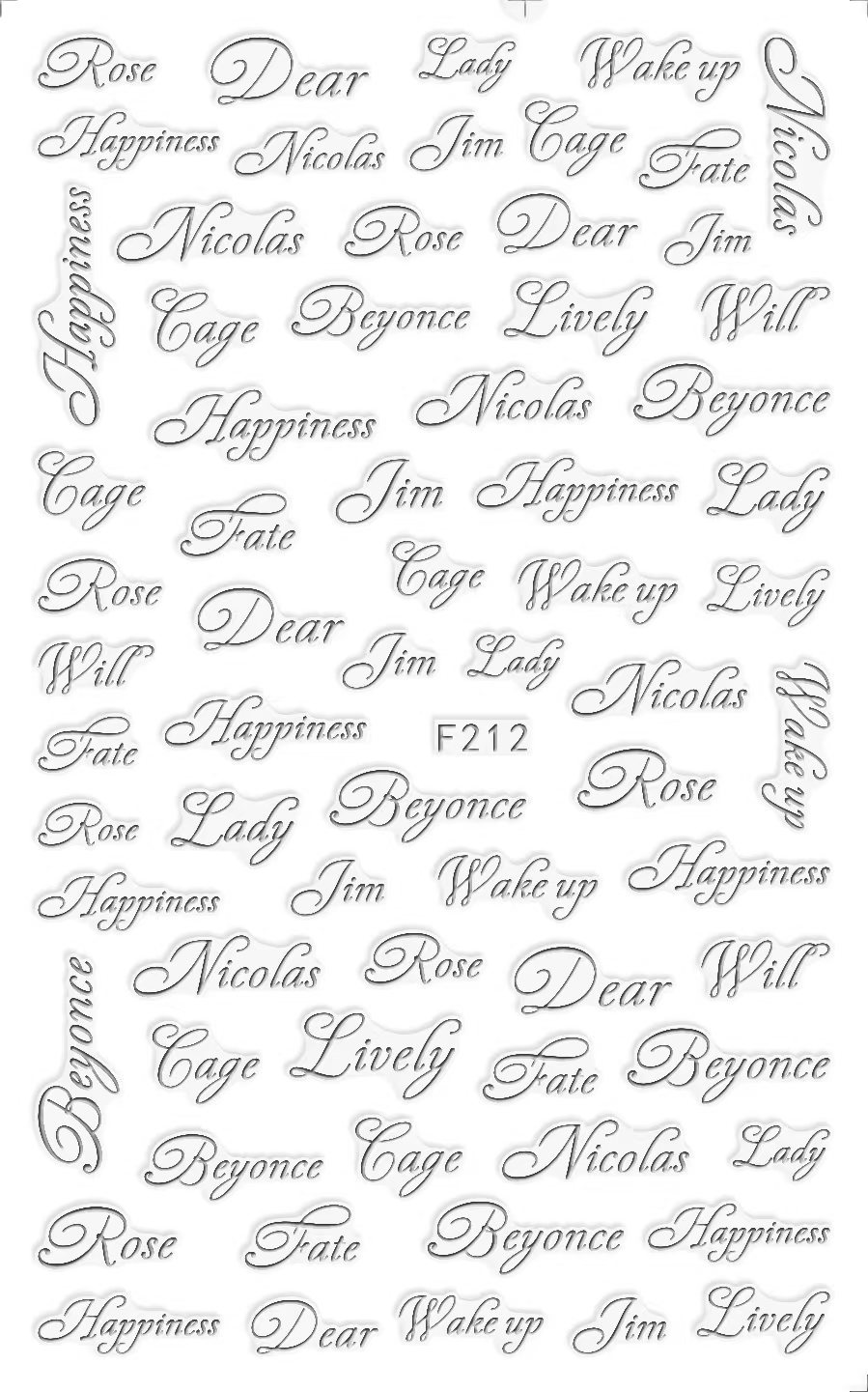 NAIL F205-212 일반적으로 사용되는 이탈리아어 블록 문자 필기 편지 네 가지 색상은 모두 NAIL 아트 접착 스티커를 갖추고 있습니다